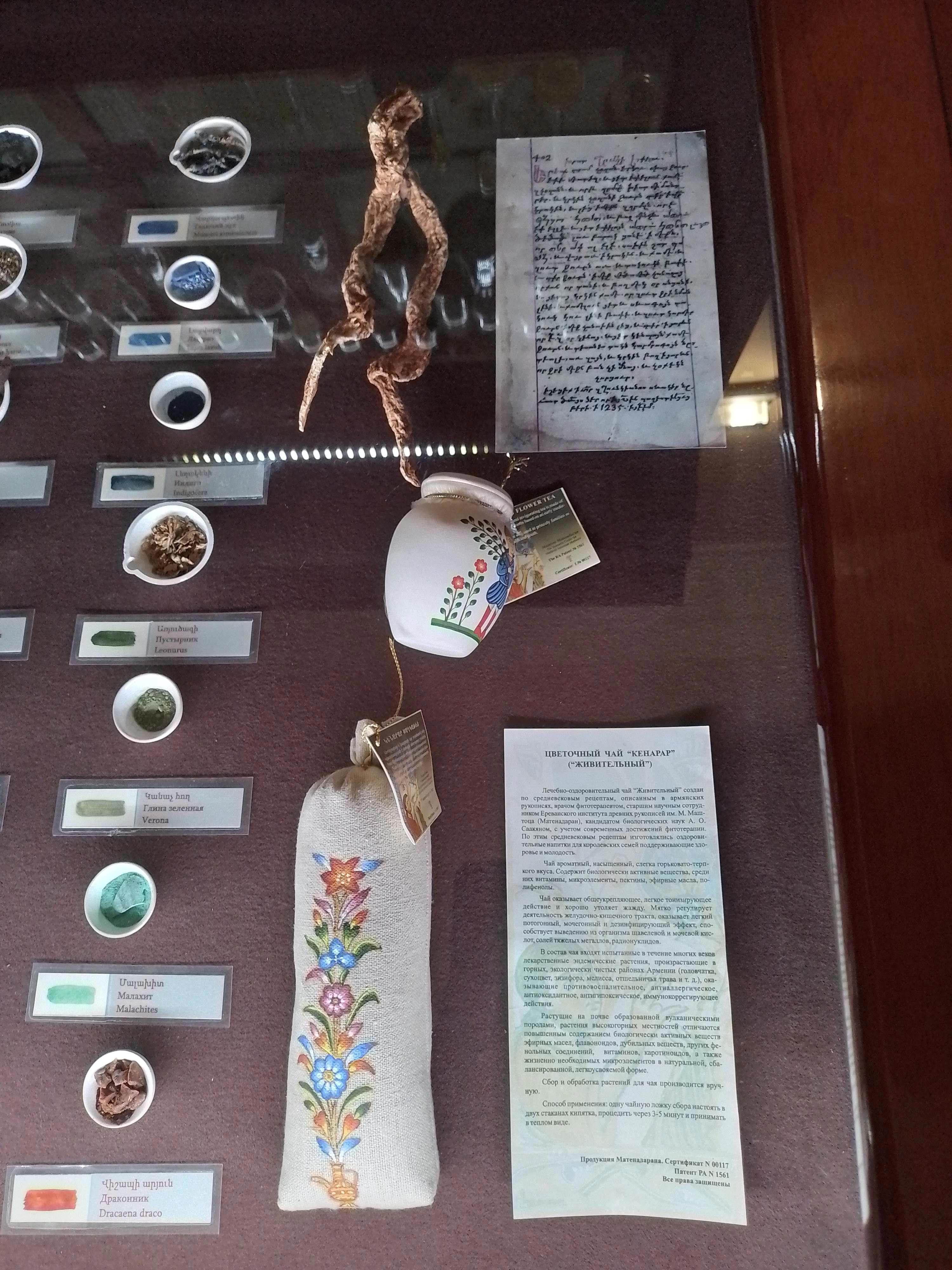 Сотрудники Матенадарана тщательно собирают растения, добывают вещества для воспроизведения древних рецептов эликсиров, бальзамов, лекарств, а также красок, которыми средневековые художники-миниатюристы расписывали рукописи.
