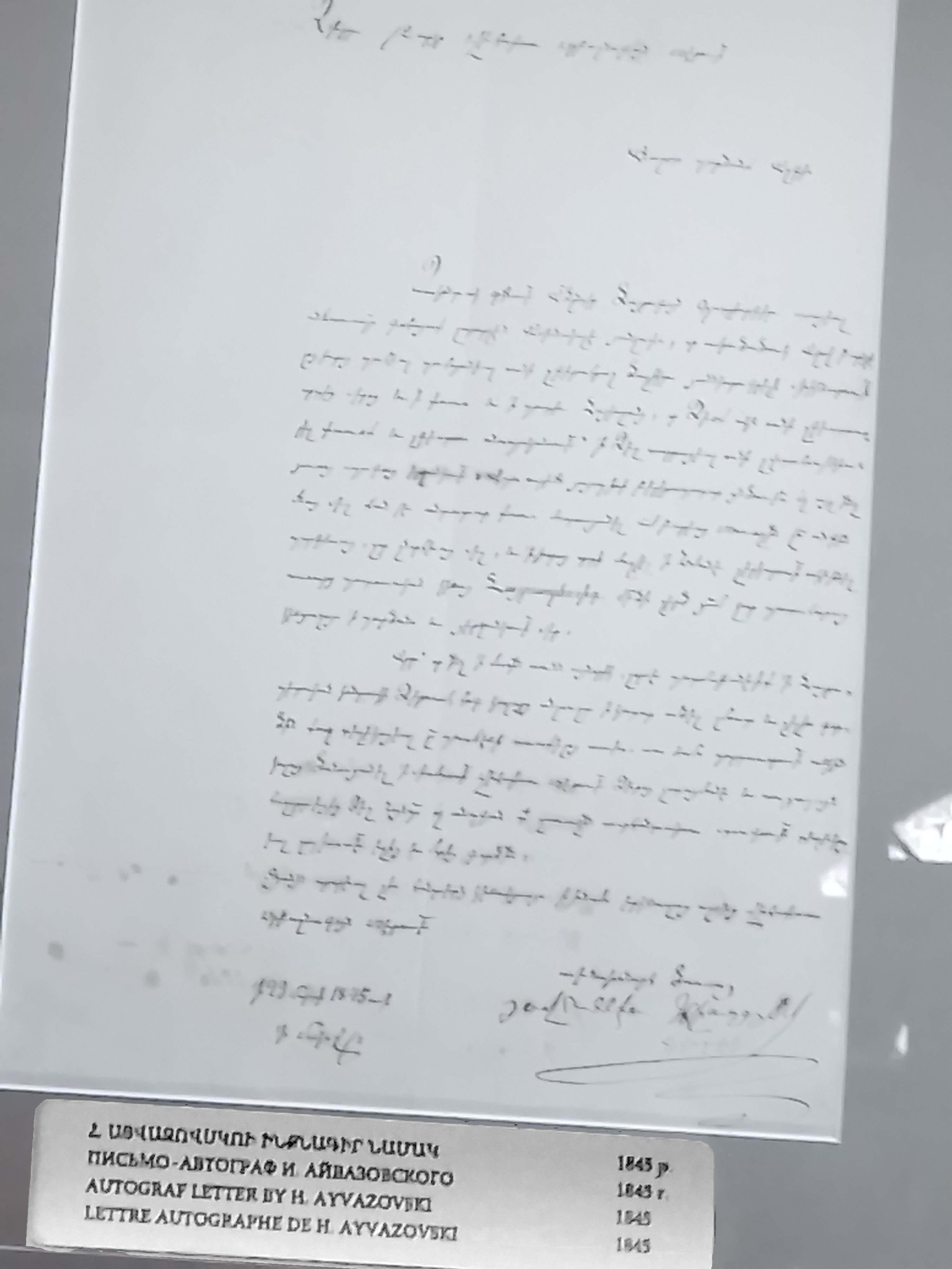 Письмо-автограф выдающегося художника-мариниста Ивана (Ованнеса) Айвазовского на армянском, 1845 г.