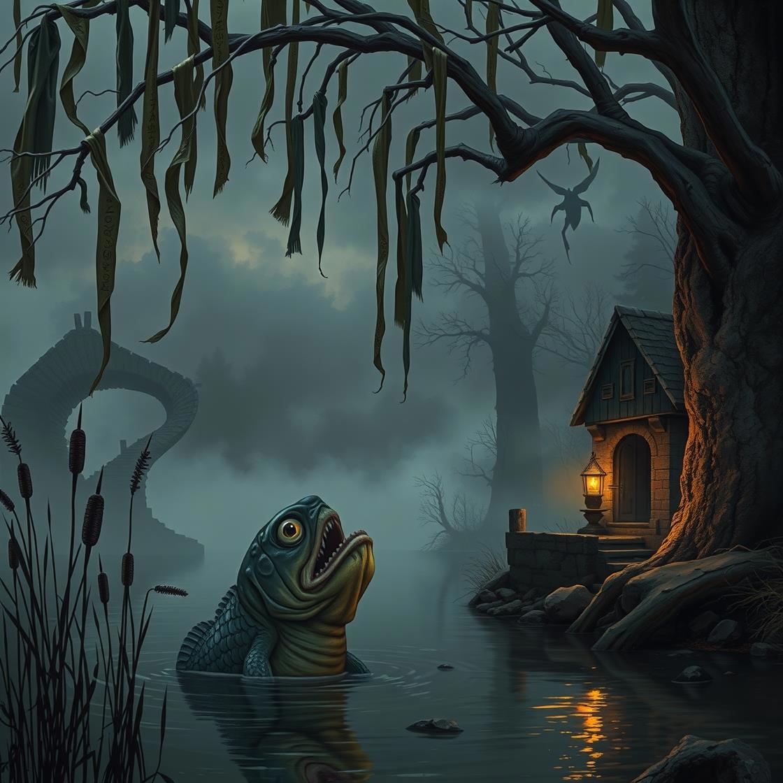 Лиля пробормотала: «Сгинь!» и на всякий случай отступила поближе к амбару. Вода у берега булькала, лопаясь болотными пузырями. Рыбина, не сводя с неё странных глаз, подняла толстую лапу, заканчивающуюся утиными перепонками, помахала на прощанье и послушно попятилась к реке. Тихо всплеснула вода, и Лиля осталась одна во всём этом богом забытом месте.