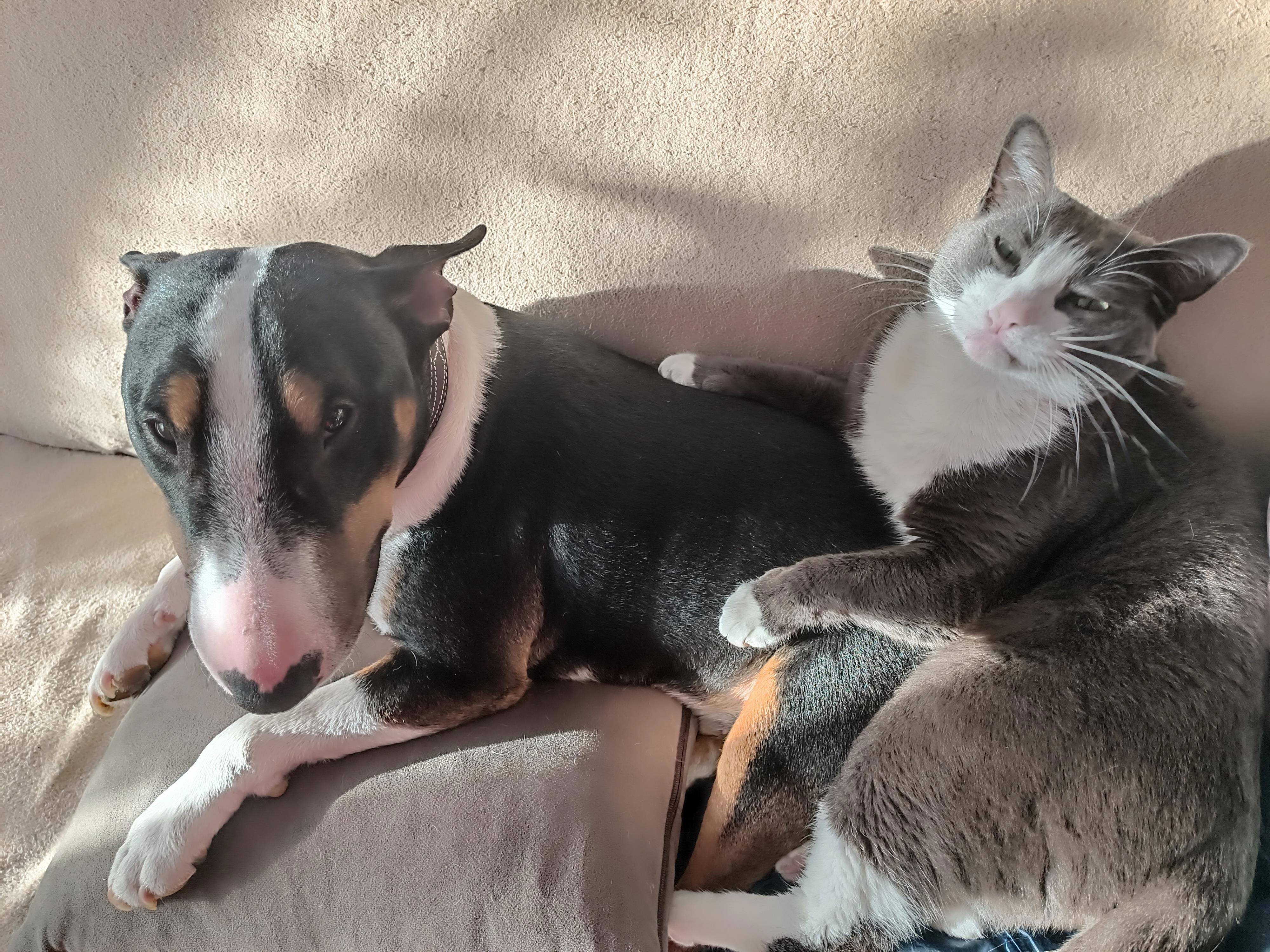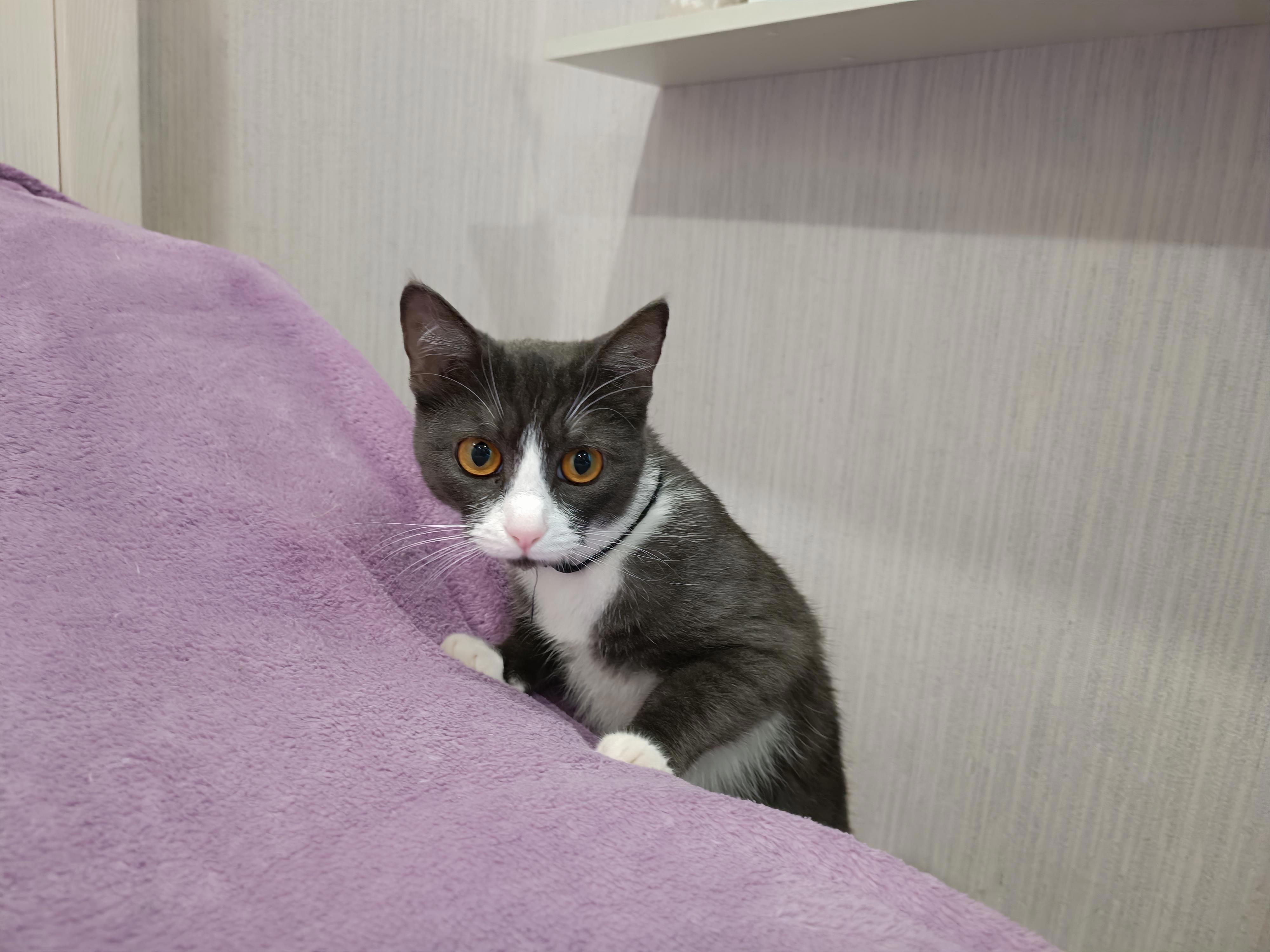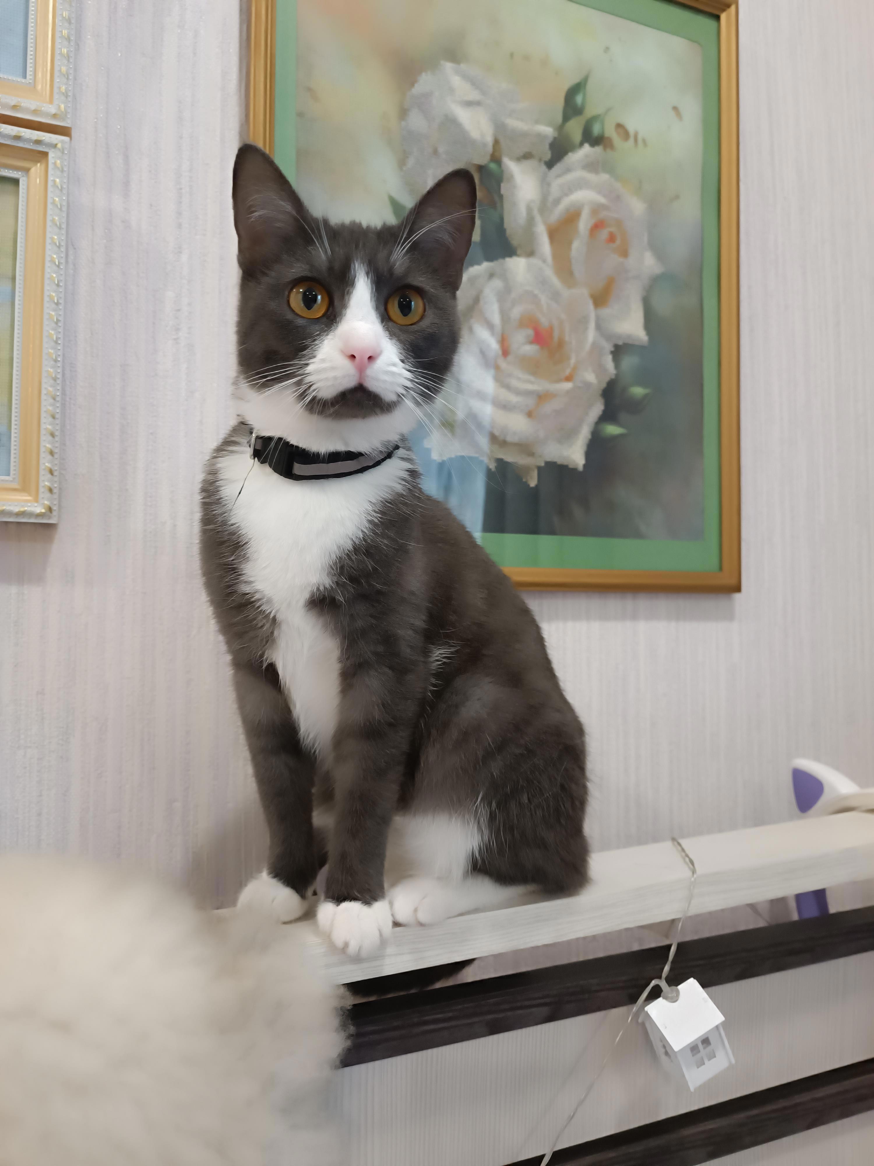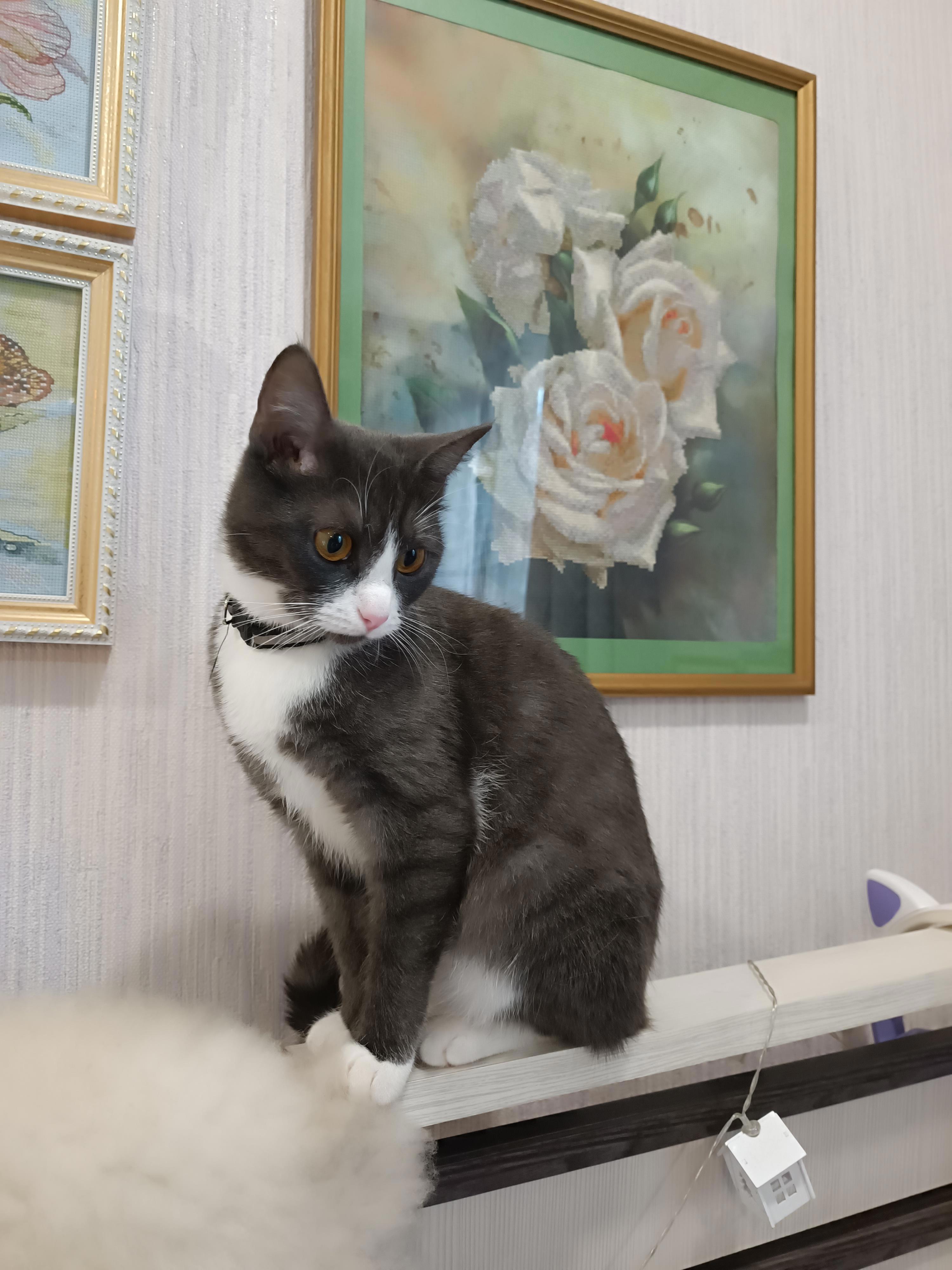 Гриша любопыша хочет её понюхать. А она шипит. Хотя на передержке жила с собаками. Надеюсь, подружится с моими парнями)