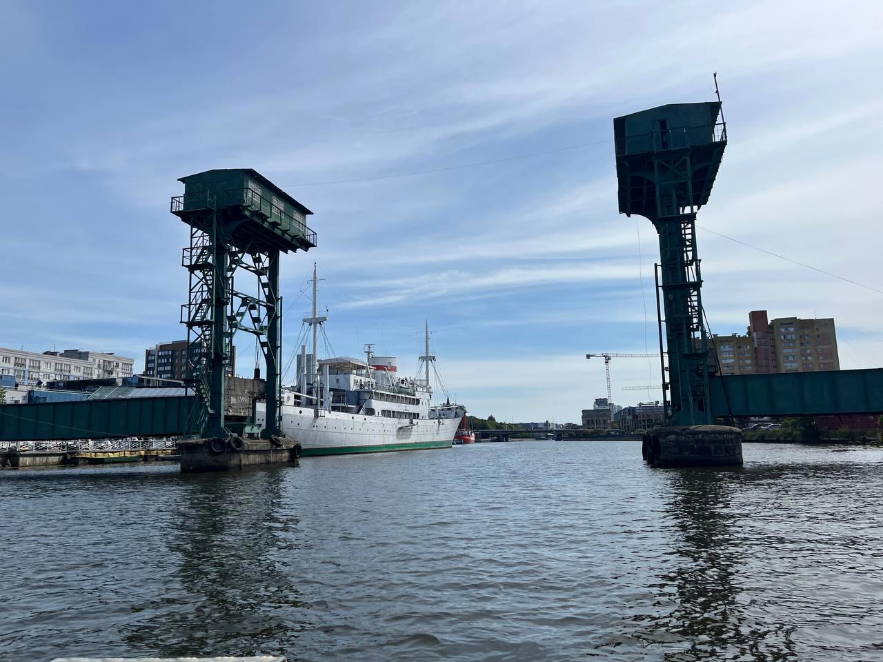 Автор: Анастасия ЖурбаМорской музей в Калининграде представляет собой огромный шар и множество кораблей, стоящих на набережной.