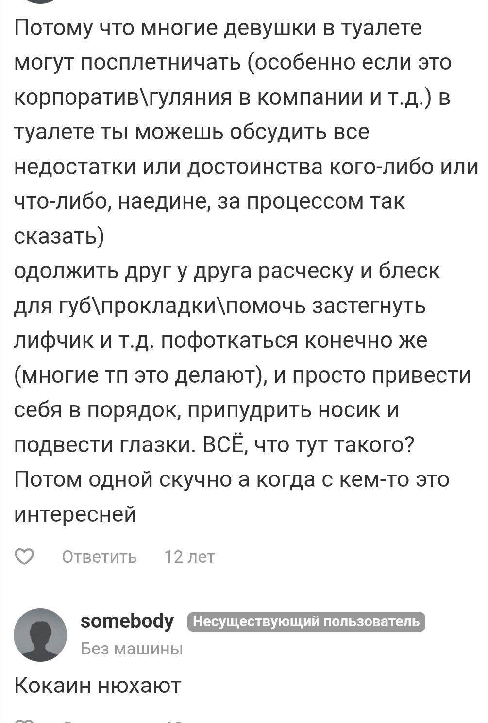 А вы никогда не задумывались почему девушки ходят в туалет по двое????