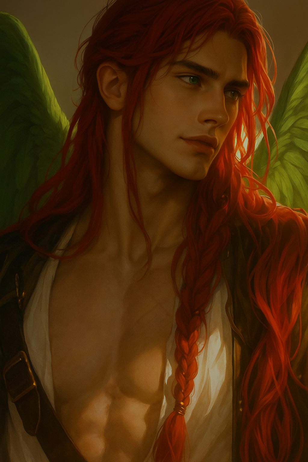 Я сделала ему арт — с изумрудными крыльями, длинными огненными волосами и тем самым взглядом, в котором столько силы и нежности одновременно.