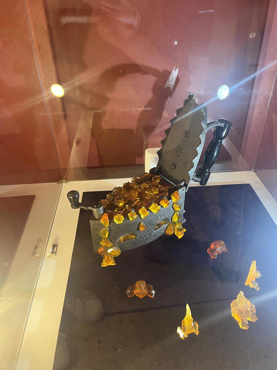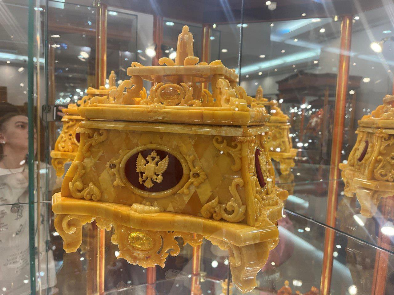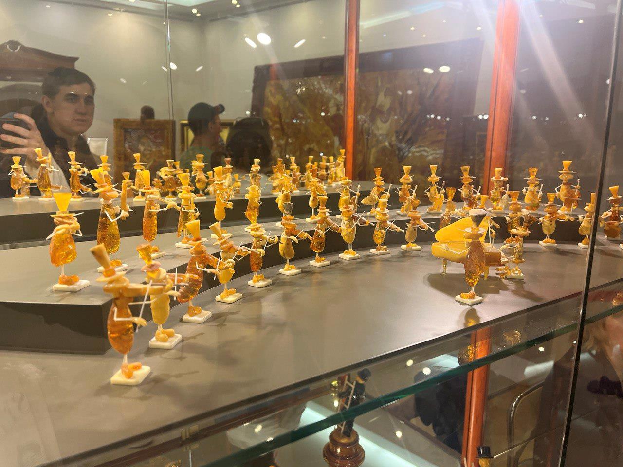 Экспозиция музея делится условно на 4 части: камушки янтаря, копии известных работ (оригиналы представлены в Петербурге), современные работы учеников Александра Журавлева (он воссоздавал янтарную комнату) и янтарные украшения.