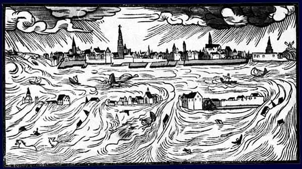 Почти с первых строк повести начиналось повествование о том, как голландцы (хотя правильнее было бы говорить о жителях Нидерландов Исторических) отвоевывали свою землю у моря. И, конечно, был рассказ о наводнениях, особенно об одном из самых страшных наводнений — в День Всех Святых 1570 года. Вот этот фрагмент:
