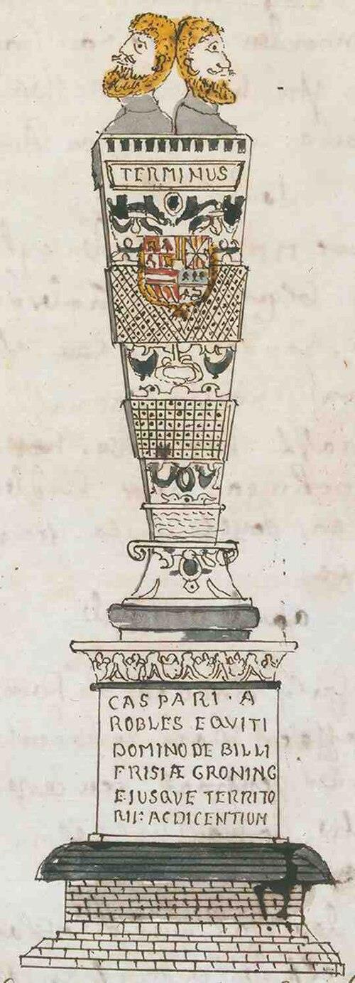 В XVIII веке на нем появилась и табличка, восхваляющая Роблеса. Правда, там же есть и таблички, называющие совсем другие имена строителей дамбы. А так-то это что-то вроде межевого столба, отмечающего середину дамбы. К Роблесу он не имеет ни малейшего отношения.