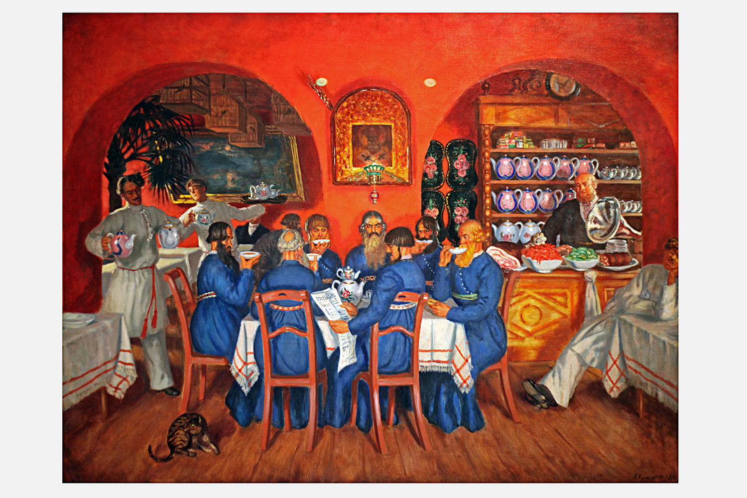 Особенное место в ряду чаепитий занимает «Московский трактир». Типичную сцену отдыха московских извозчиков художник увидел и сказал: «Веет от этих извозчиков чем-то новгородским. Иконой, фреской».