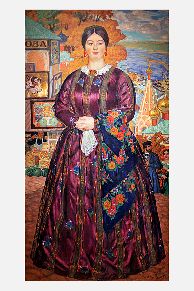 Кустодиев был участником четырех выставочных объединений (Нового общества художников, Союза русских художников, Мира искусства и Ассоциации художников революционной России), при этом стиль Кустодиева неизменно сохранял свою оригинальность и независимость. Известность живописцу принесли узнаваемые, богатые фантазией и наполненные юмором картины провинциальной жизни. На полотнах художник изобразил всю прелесть Руси с румянцем купеческого достатка на пышущей здоровьем юной девичьей щеке.