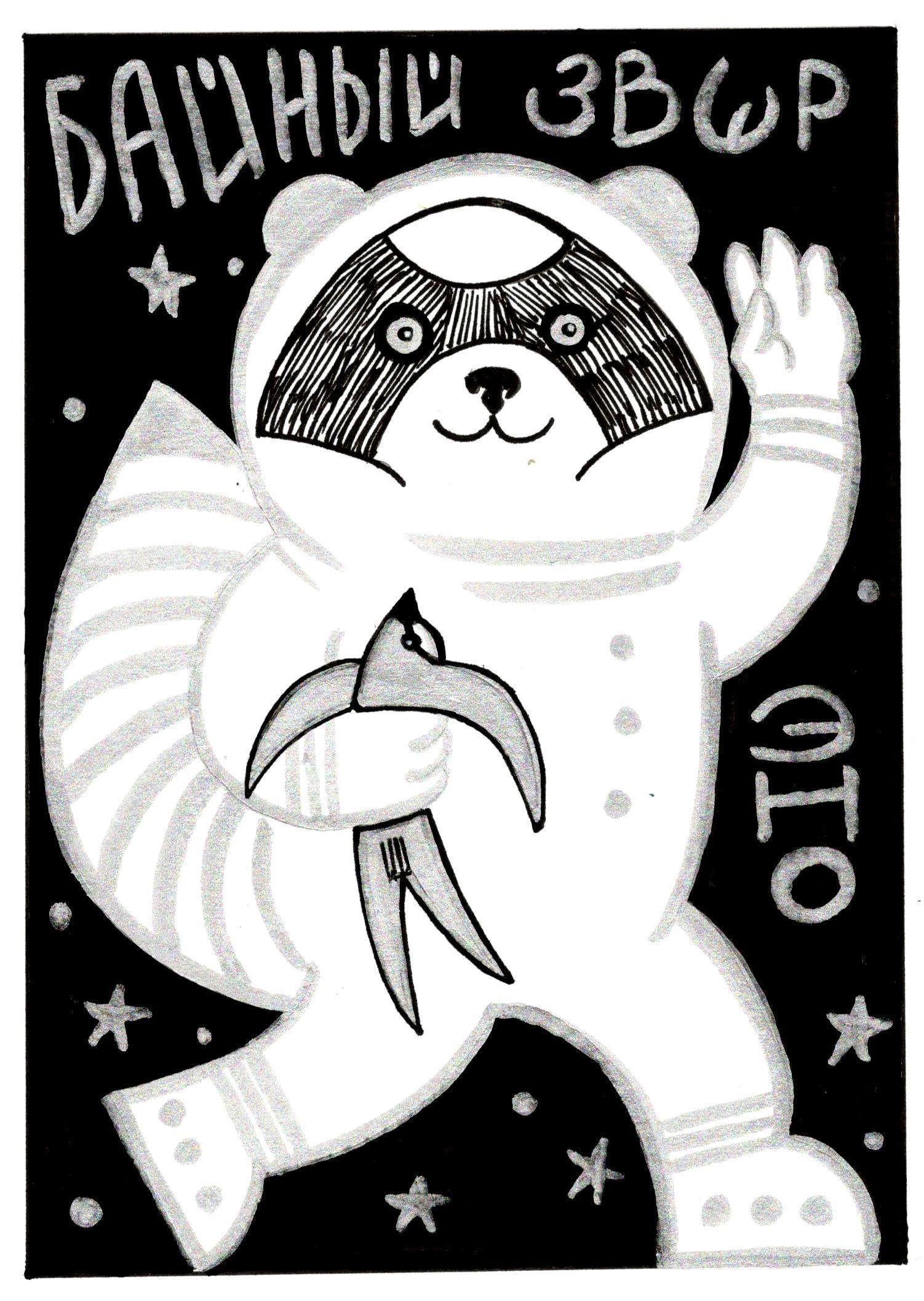 К рассказу Клюет! (космос, юмор, космонавты-раздолбаи и еноты в виде стлашной расы чужих) мне подарили аж две три: