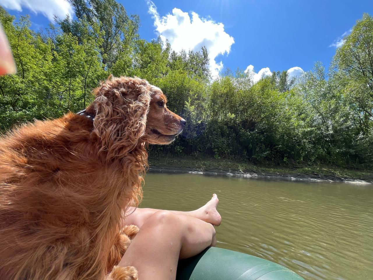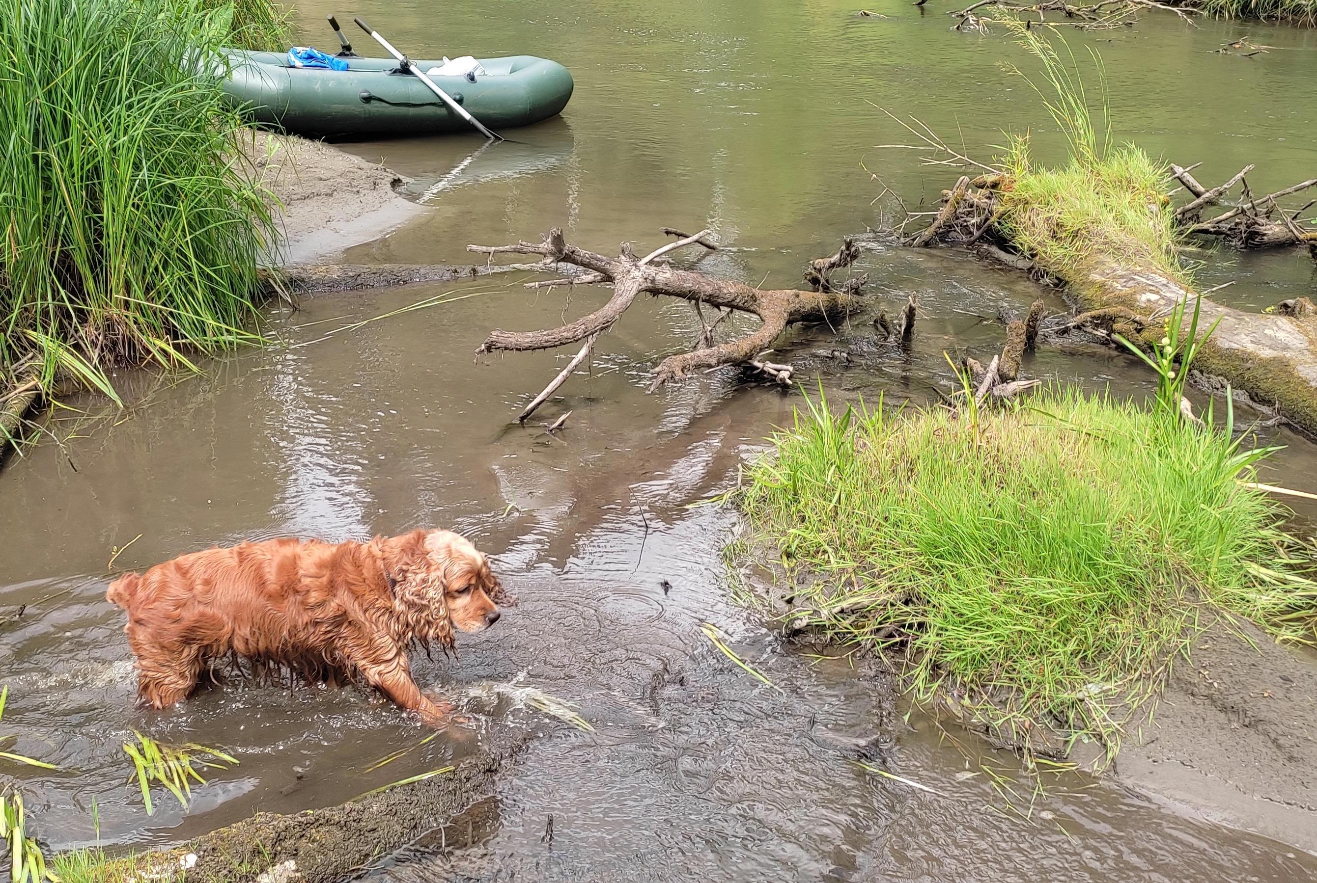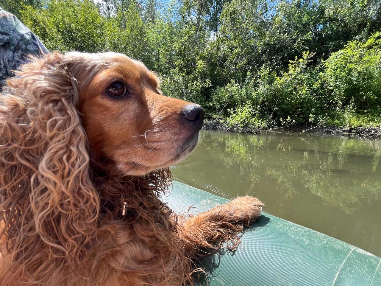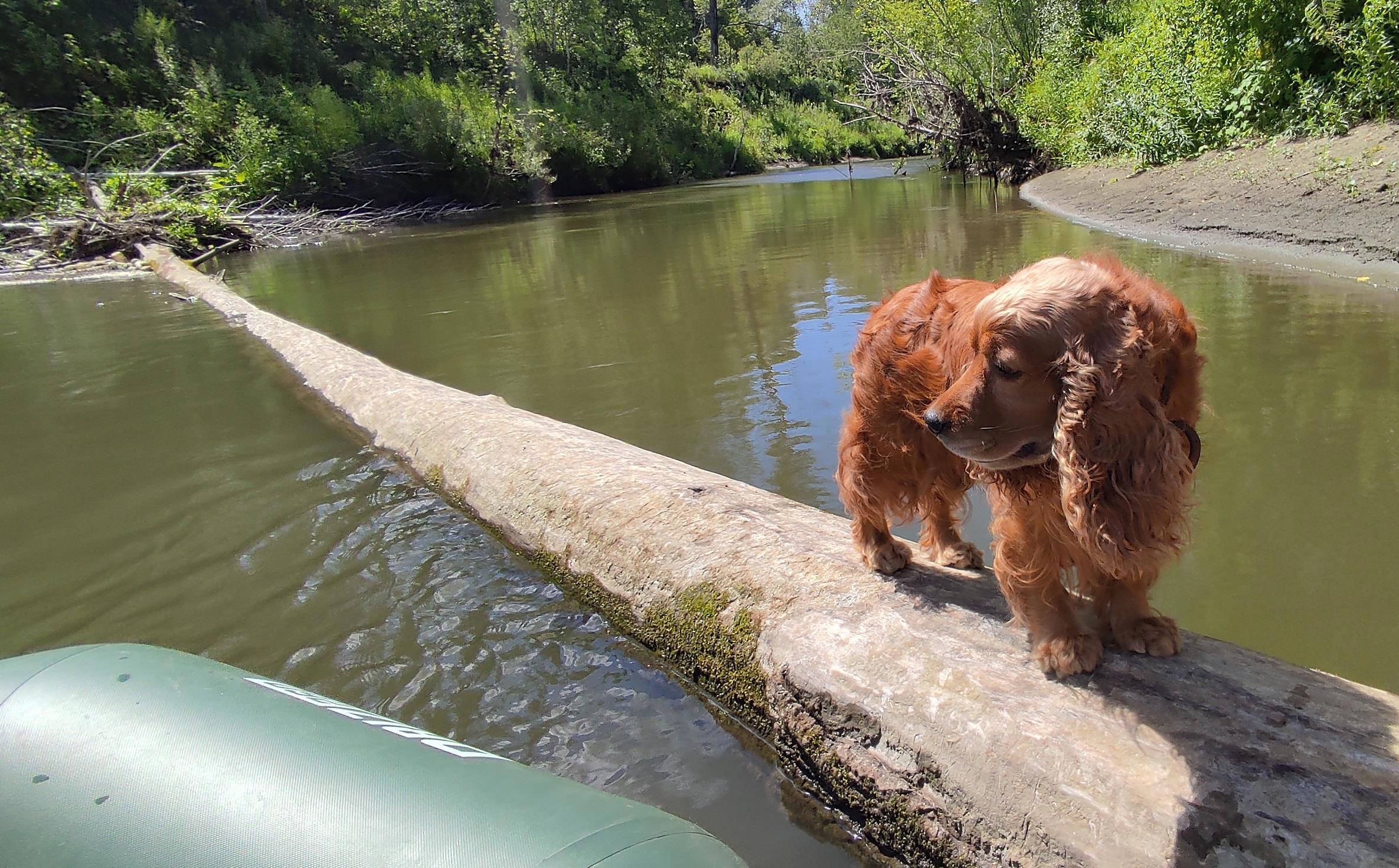 Автор: Андрей ВдовинСегодня наша собака по имени Дулька решила отправиться в поход на лодке по лесной речке. В качестве сопровождения взяла с собой двух человек — меня и мою жену.