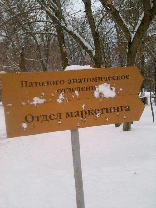 Кажется, я начинаю понимать, почему с вывесками тут всё не так. Вы только посмотрите, где у них отдел маркетинга:
