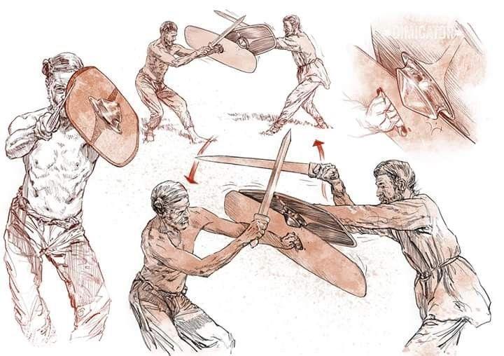 Как на самом деле использовали холодняк в эпоху викингов остается только гадать. Довольно молодое направление "викинг-хема" - это не более, чем проекция значительно более поздних техник фехтования на эпоху викингов. Популяризаторы викинг-хемы честно признаются - ребята, мы опираемся на то, что писал Гектор Мейр, Иоахим Майер, помним, как Мароццо завещал бороццо, это все пытаемся приспособить к каролингу и плоскому щиту с кулачным хватом.