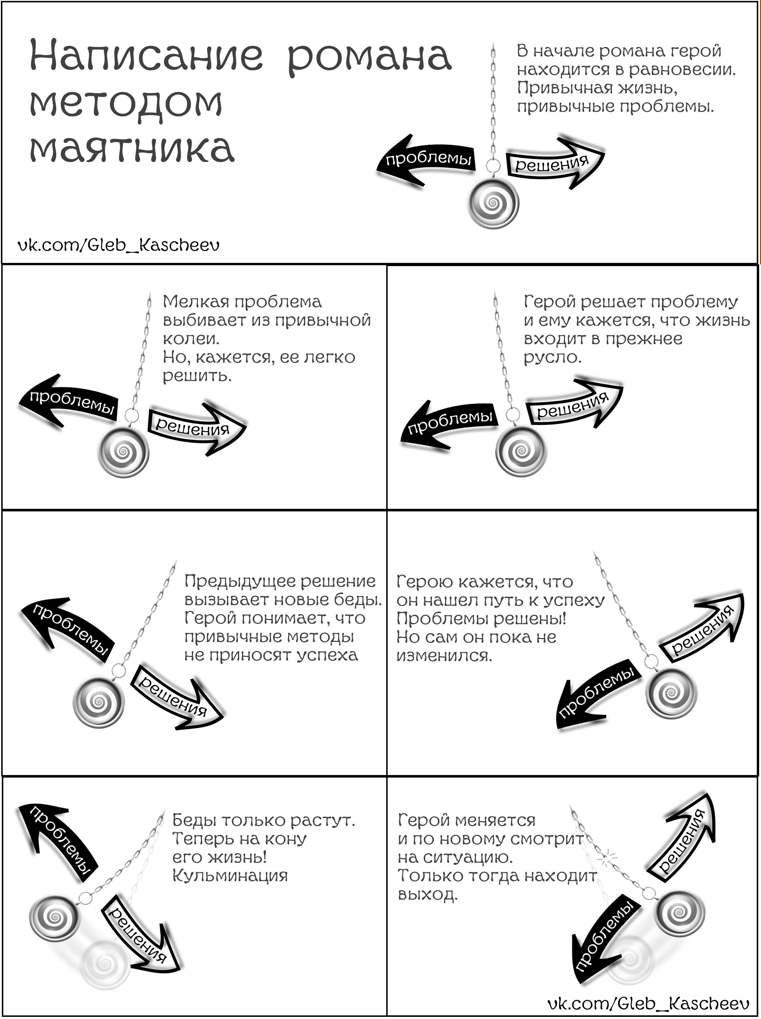 Мне ближе всего такая структура, где беды идут по-нарастающей от мелких к глобальным, грозящим похоронить героя под собой. И каждое решение предыдущих проблем приводит к новому еще более глубокому кризису, пока герой не примет то единственно возможное изменение, которое приводит к взгляду на проблемы с другой стороны и эффективному выходу из них.