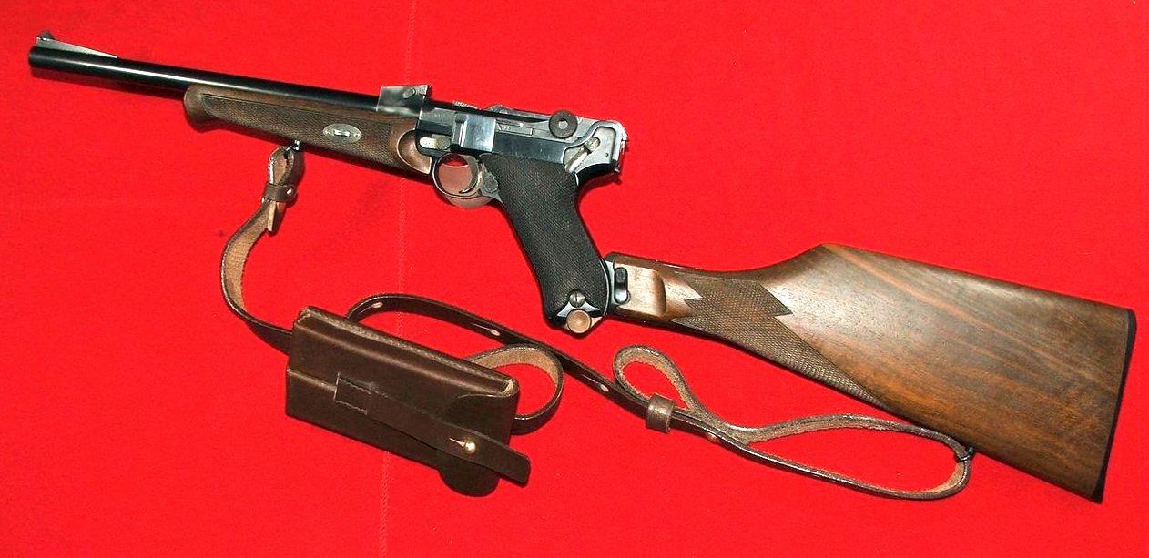 Модель так и называлась – Luger Parabellum Carbine. А вот ещё один вариант того же оружия, который военные заказали специально для своих артиллеристов (модель Luger p08 артиллерийский):