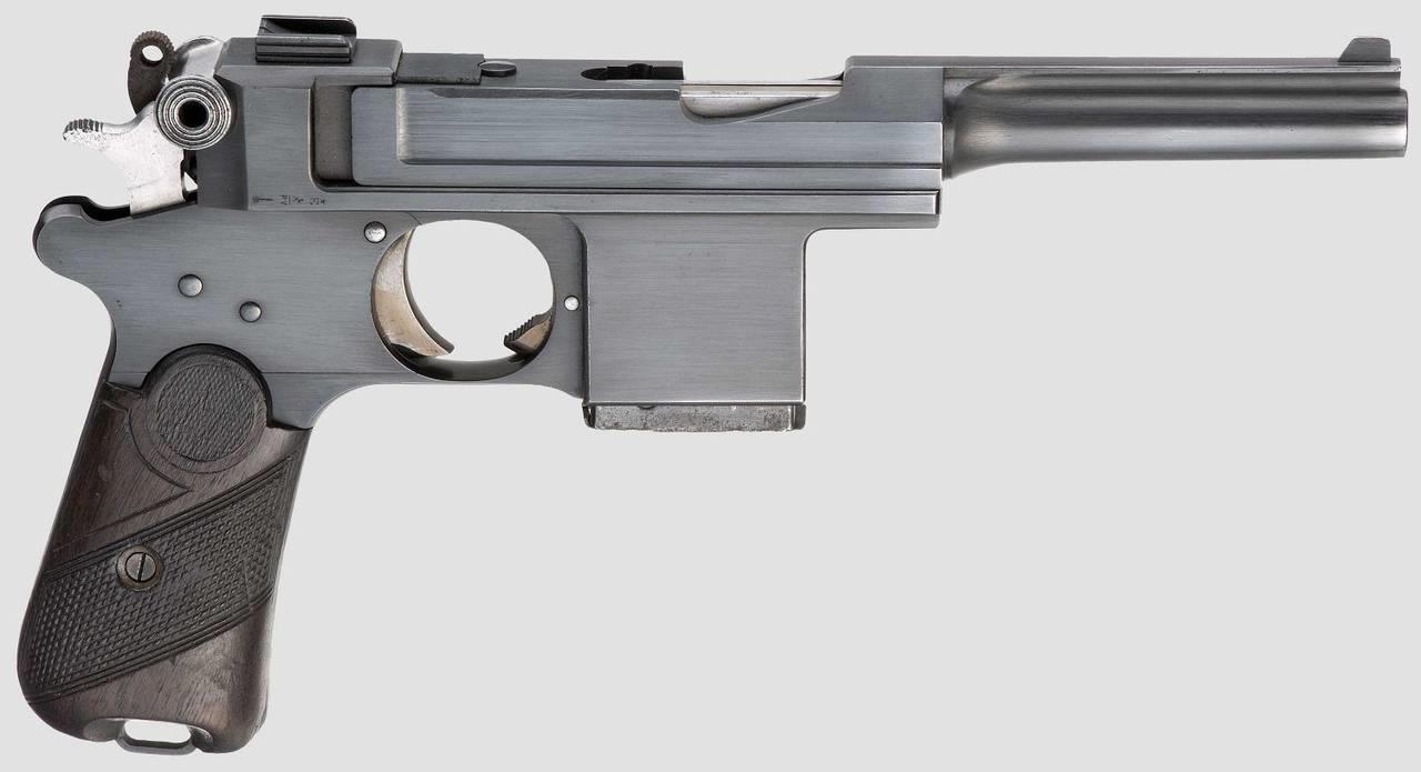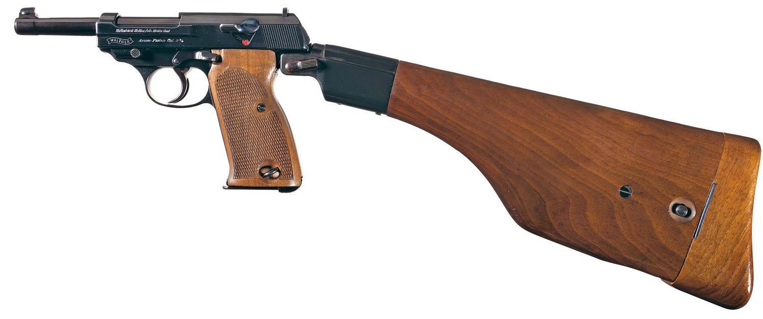 Вообще пистолеты со съемными прикладами и другими «приблудами» начали делать так давно, что можно даже сказать, что их делали всегда. Причём не обязательно наличие приклада подразумевало увеличение длины ствола. Вот, например, вполне нормальный «Вальтер АР» с таким съёмным прикладом: