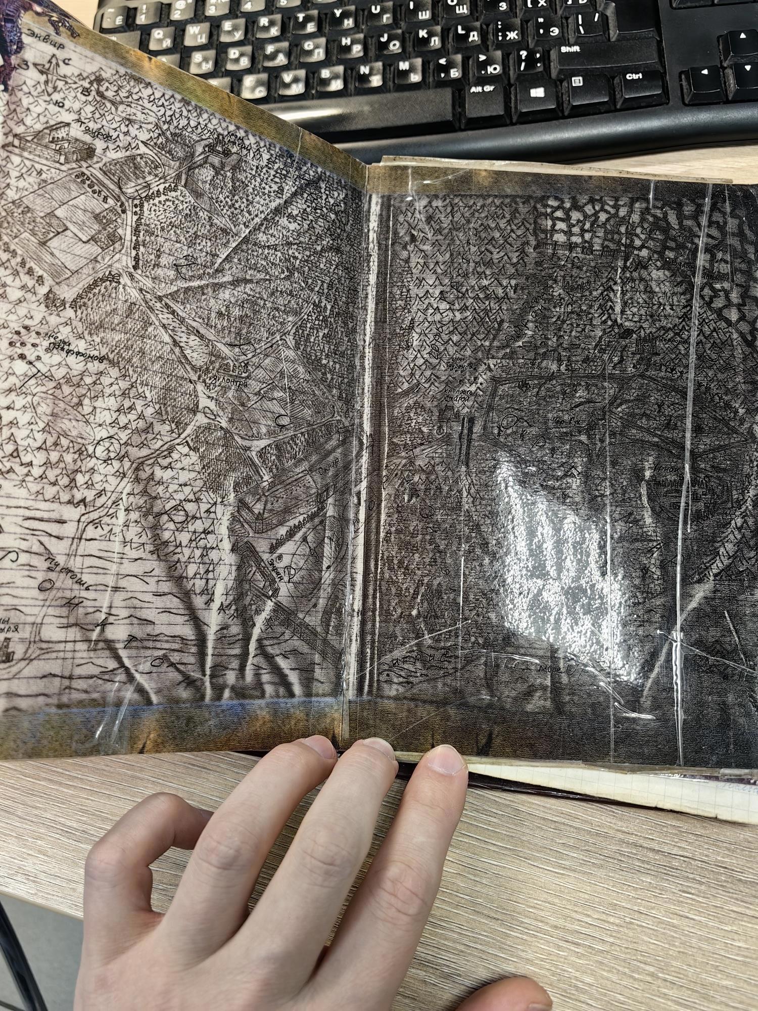 Около года, в редкие минуты досуга, я кропотливо работал над этим произведением, создав примерно половину задуманного. Был тщательно проработан сюжет, составлено подробное оглавление и даже нарисована карта мира, где разворачивались события.