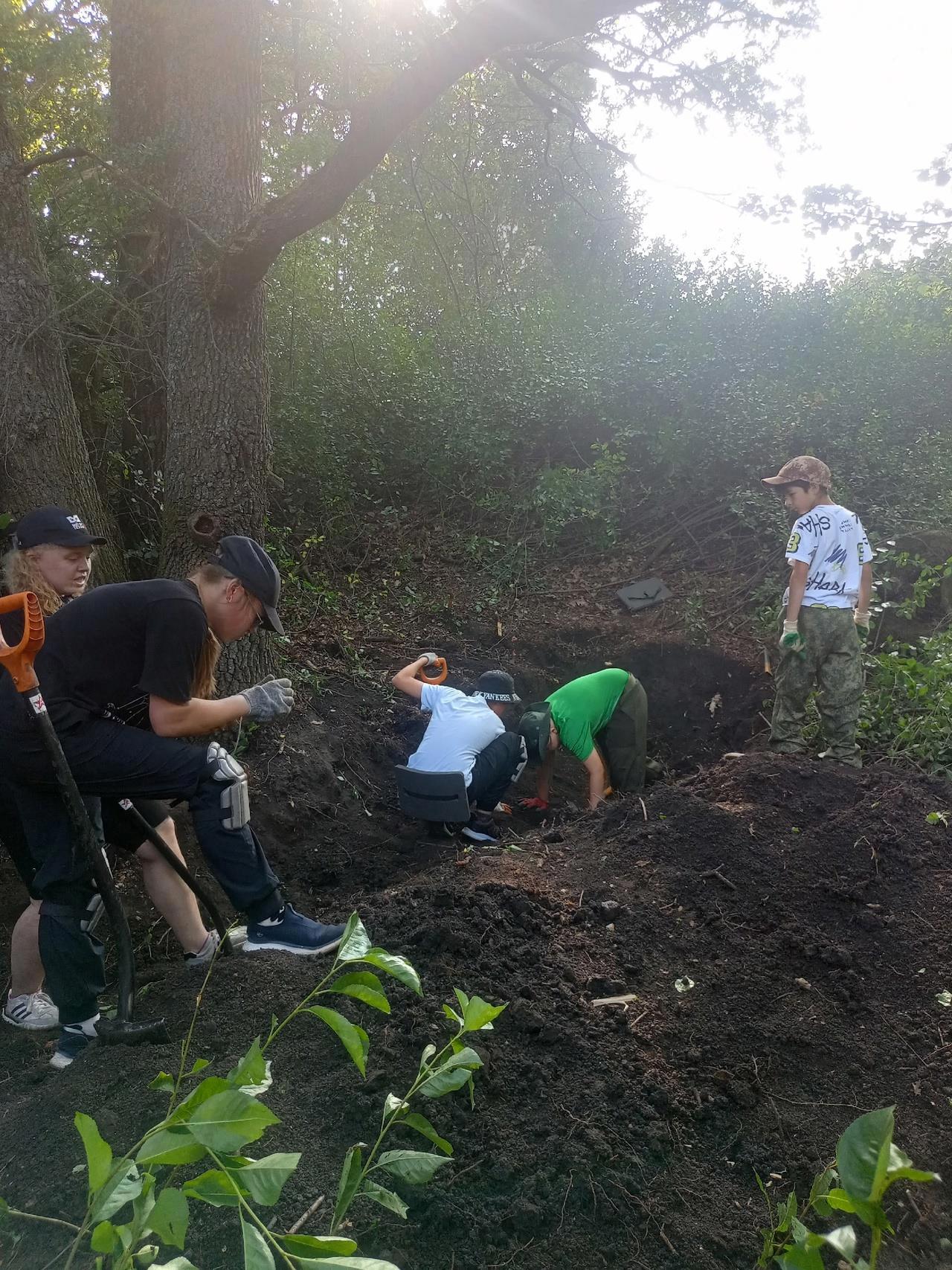 НОМЕРНЫХ ДЕТАЛЕЙ ПОКА НЕТ, ПРОДОЛЖАЕМ УБИРАТЬ КУСТАРНИК И НАДЕЯТЬСЯ ЧТО-ТО ГДЕ-ТО ПОД НИМ НА СКЛОНЕ НАС ЖДУТ ОСТАНКИ. УВЕРЕННОСТИ НЕТ, НО МЫ ПРОДОЛЖИМ РАБОТУ НЕ СМОТРЯ НА ЖАРУ +30.