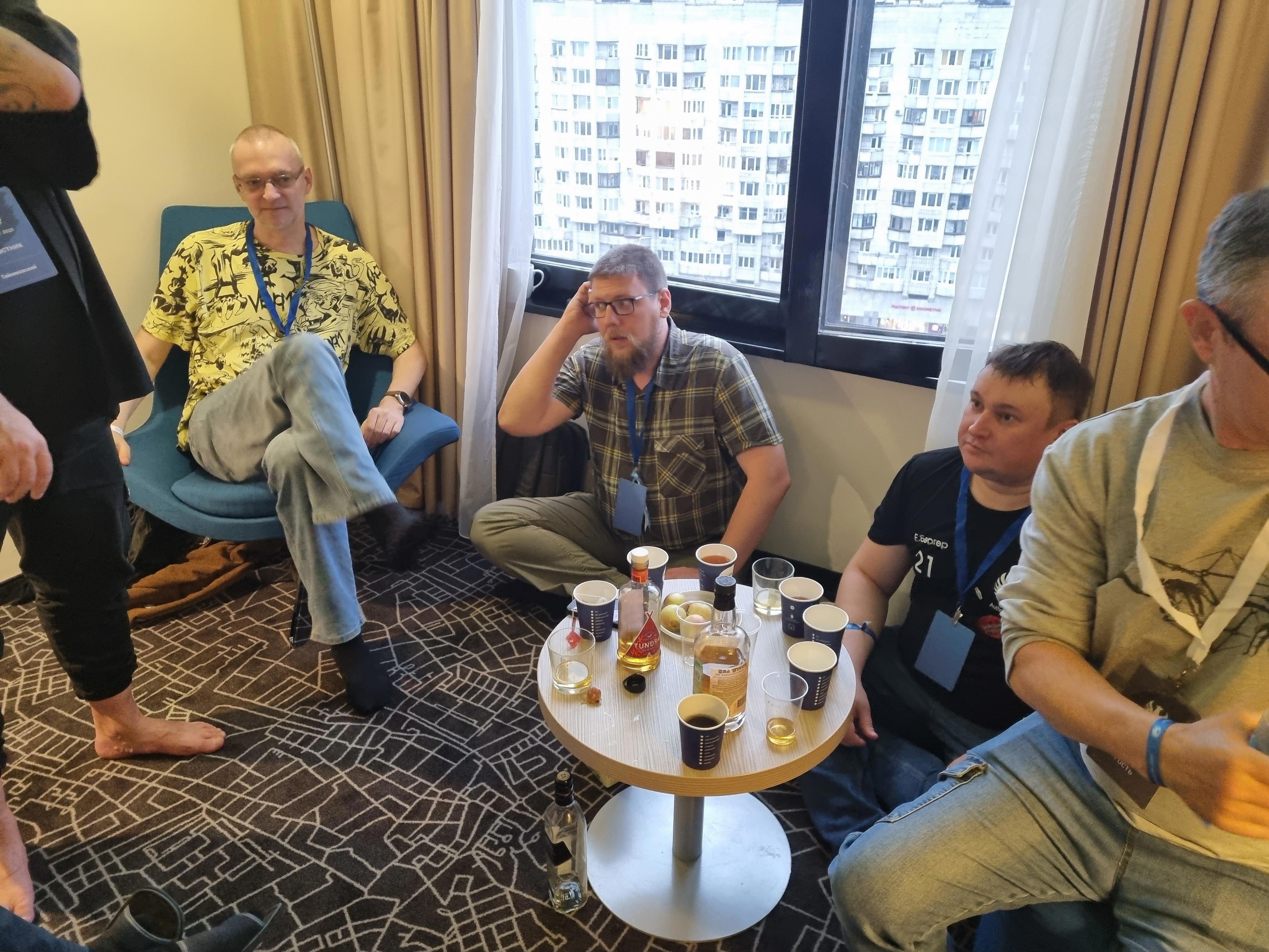 Все пьют чай. Но если серьезно, в отличие от Роскона, на котором алкоголь - важная часть мероприятия, тут все было контролируемо. Никакого алкоголя на фуршете и ужине, умеренно - в баре или по номерам.