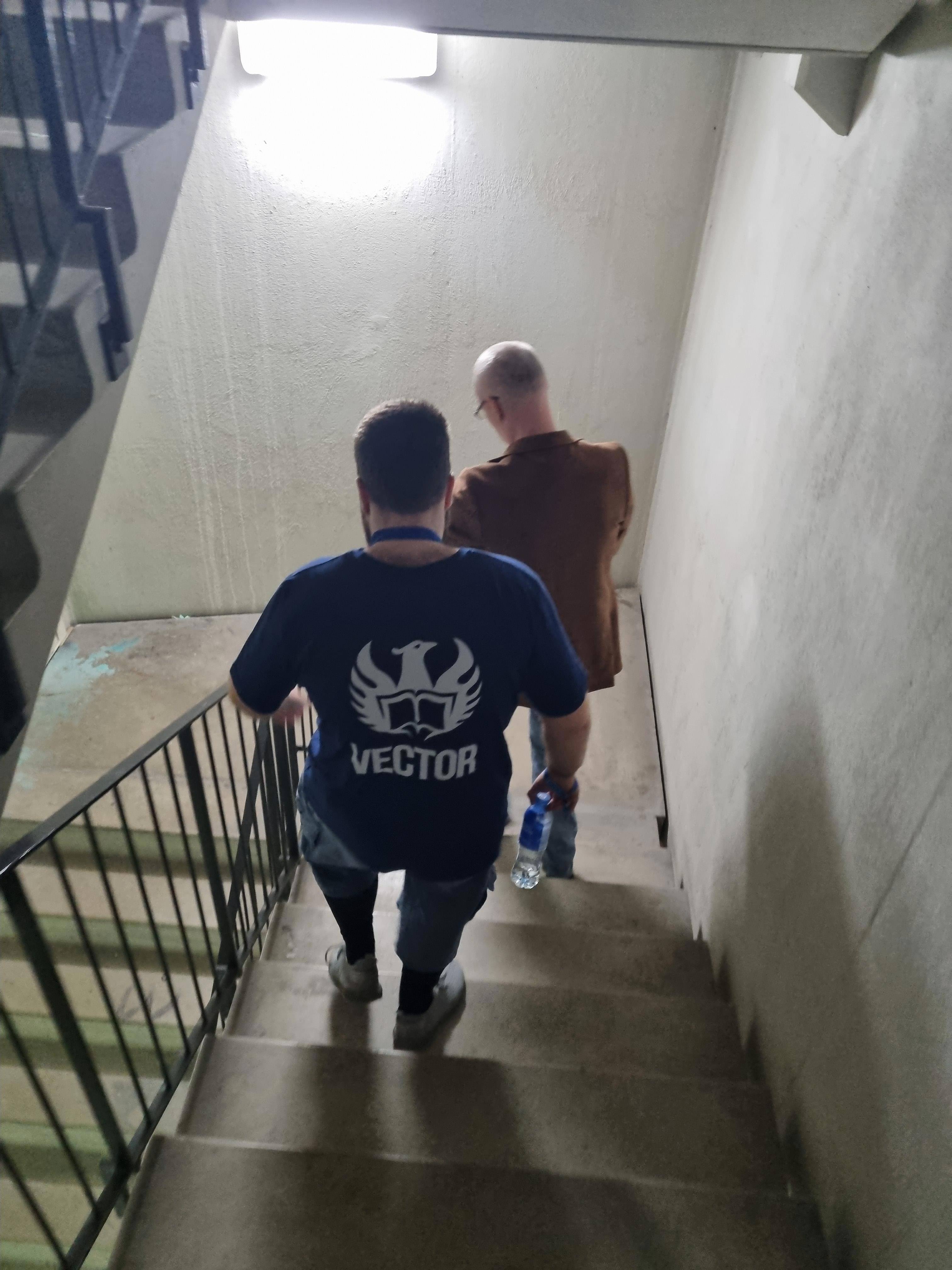 А потом спускались с 11-го этажа по лестнице, попутно вспомнив истории, которые сами пишем. Ну, типа, стоит ли разделяться, кто из нас главный герой, а потом сошлись, что если нас всех сожрут, то главный герой - монстр!