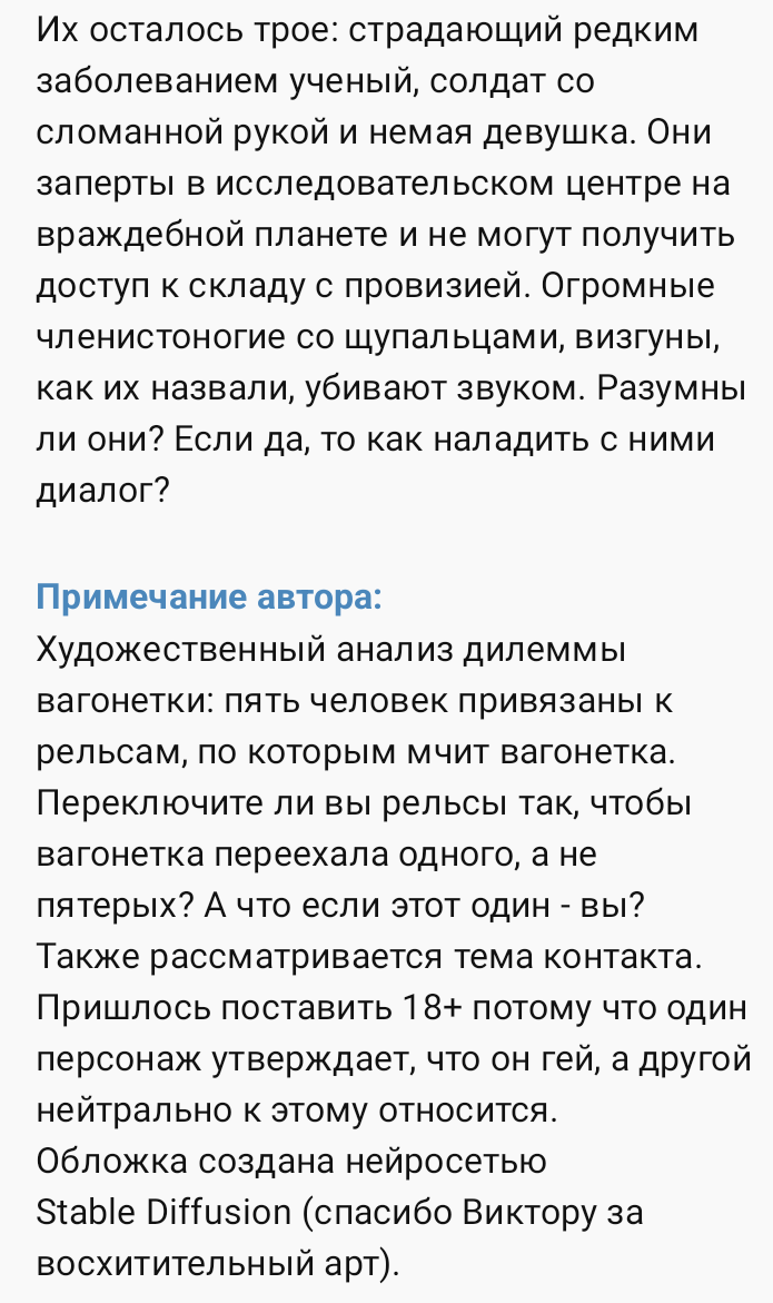 Автор: Лара ГринДля тех кто ищет, чего бы почитать, продолжаю "потрошить" свою библиотеку. Благо, за три года моего пребывания на сайте, она достигла солидных размеров. В своем блоге я выкладываю ссылки на книги разных форматов (рассказы, повести, романы) и жанров (триллеры, сказки, любовные романы, фэнтези, космическая фантастика, антиутопия, постапокалипсис и т.д).