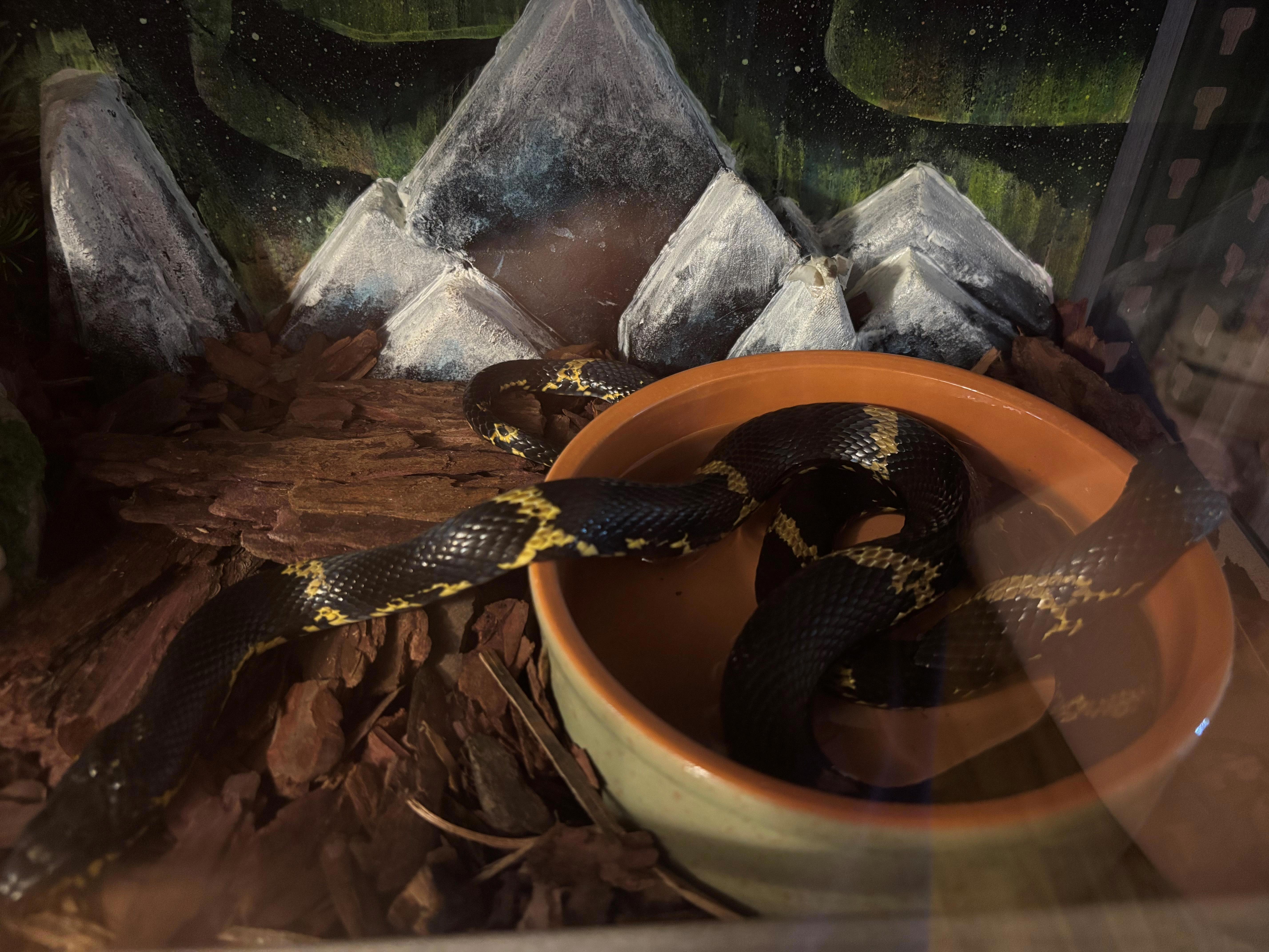 А это моя Сибирь ( амурский полоз) жарко ей, принимает прохладные ванны.
