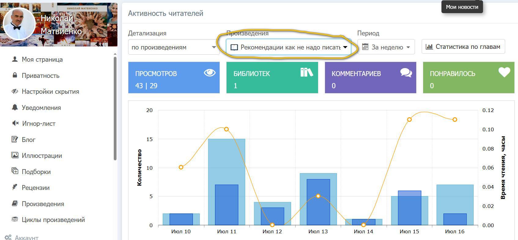 Лидирует по количеству часов чтения "Рекомендации как не надо писать роман" - жанр юмористическая публицистика.