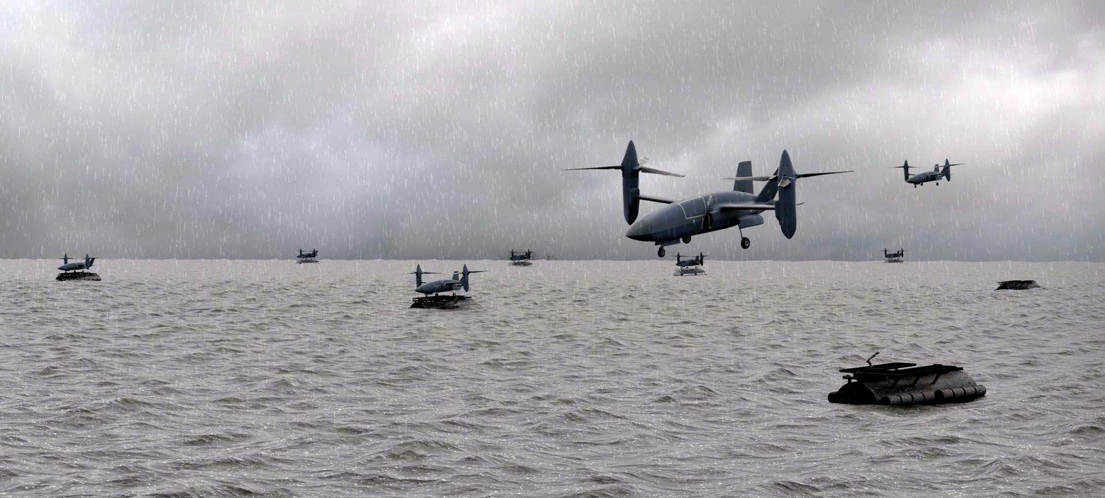 Я так и не понял, что это за странные бочки, с которых взлетают дроны? Почему не с берега или с палубы десантного корабля, которых у сэшэашников много… пока. Море на картинке спокойное, а как взлёт будет выглядеть при волнении на море метра в 3-4 высотой примерно (средненькая такая волна)? Про посадку не спрашиваю, потому что знаю точно – никак.