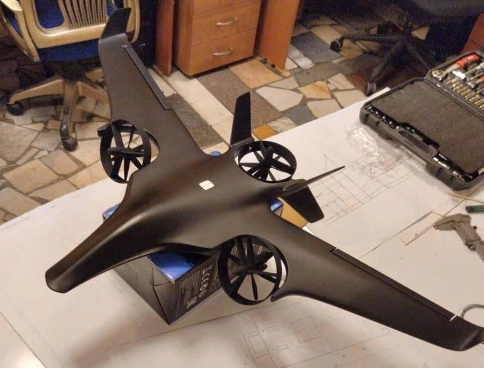 И такой же дрон, но во время взлёта, когда каналы подъёмных винтов полностью открыты: