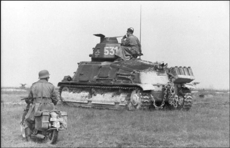 ...Немцы до того не любили французские танки, за то что они старые и тихоходные, что даже сочинили штат танковой роты на трофейных танках к 1 апреля 1941 года. Видимо посмеяться решили. Ну а тянули так долго из-за того, что устроили небольшой апгрейд трофеям, отремонтировали на французских заводах, поменяли радиостанции, установили свой пулемёт и запилили командирскую башенку от "тройки" - мечту любого попаданца. Ну и одно дело, это просто захомячить себе в батальон несколько лишних или запасных трофейных машин, и совсем другое - это полноценный штат, составленный и подписанный на высшем уровне.