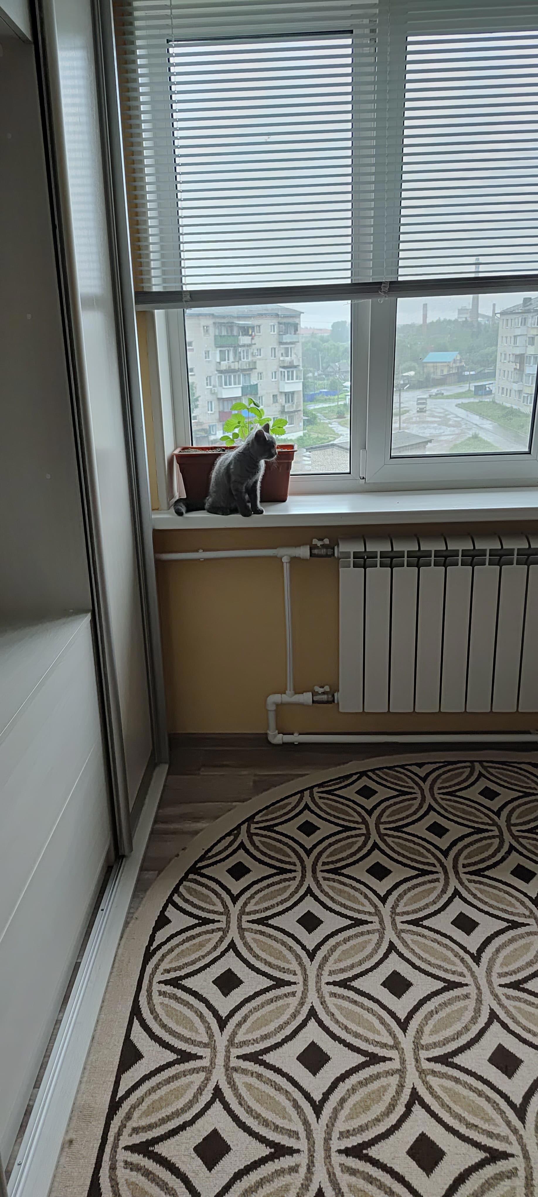 Теперь мы с музой-старшей уверены, что дождь порождает котиков, поэтому и взирают на него с любопытством. 3 часа в дороге на руках под ливнем и хоть бы один "мяу" протеста! По возвращению в "кошкин дом" (а это теперь её дом), на всякий случай поставил мини-музу смотрящей за двором. Осмотрелась, одобрила. Пост, говорит, принят. А меня, говорит, Катюха зовут (русификация от "Кэти", мы же тоже боремся с чистотой в русском языке!). Ну и давай мне новые главы сходу надиктовывать... придётся идти записывать.