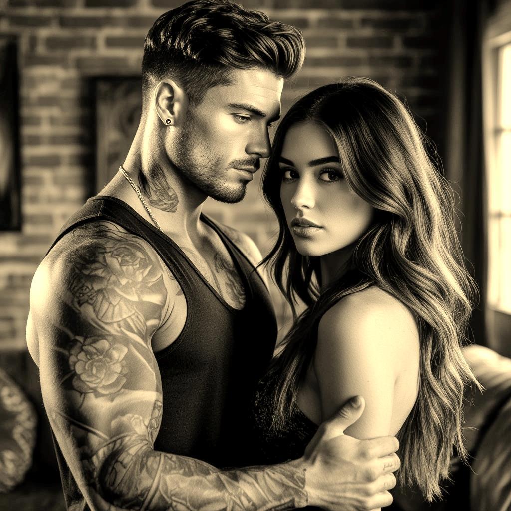 Также с помощью нейросети я создала этот потрясающий арт. На нём изображены главные герои романа - Хантер и Эвелин))