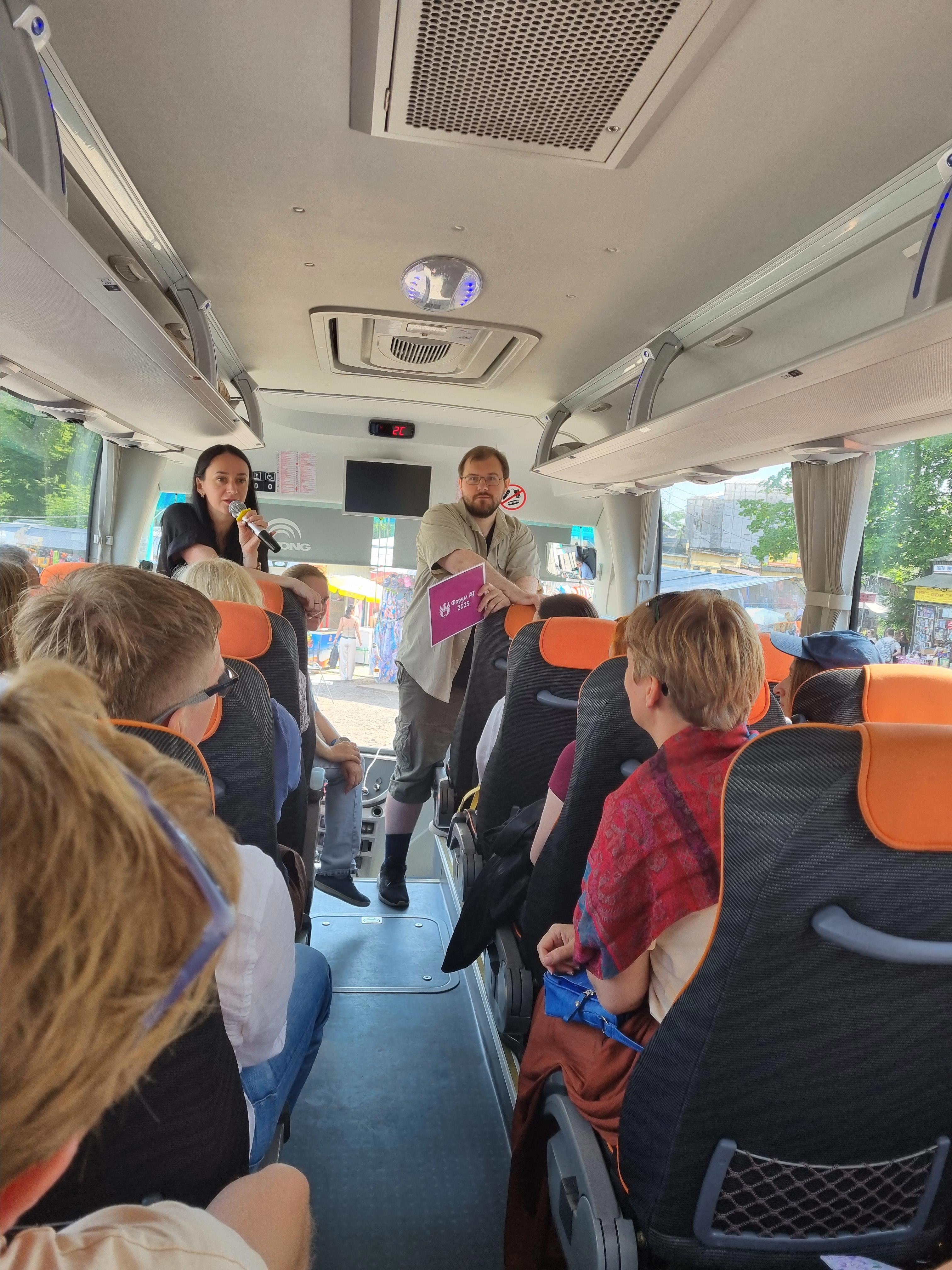 Чувак с фиолетовой табличкой - респект ему. Несмотря на то, что я очень хотел спать и пытался воплотить свое желание в жизнь, но все равно слушал лекцию и периодически поднимал голову, чтобы посмотреть на здание, мимо которого мы проезжали. И узнал многое о месте, куда мы ехали - и это было интересно.