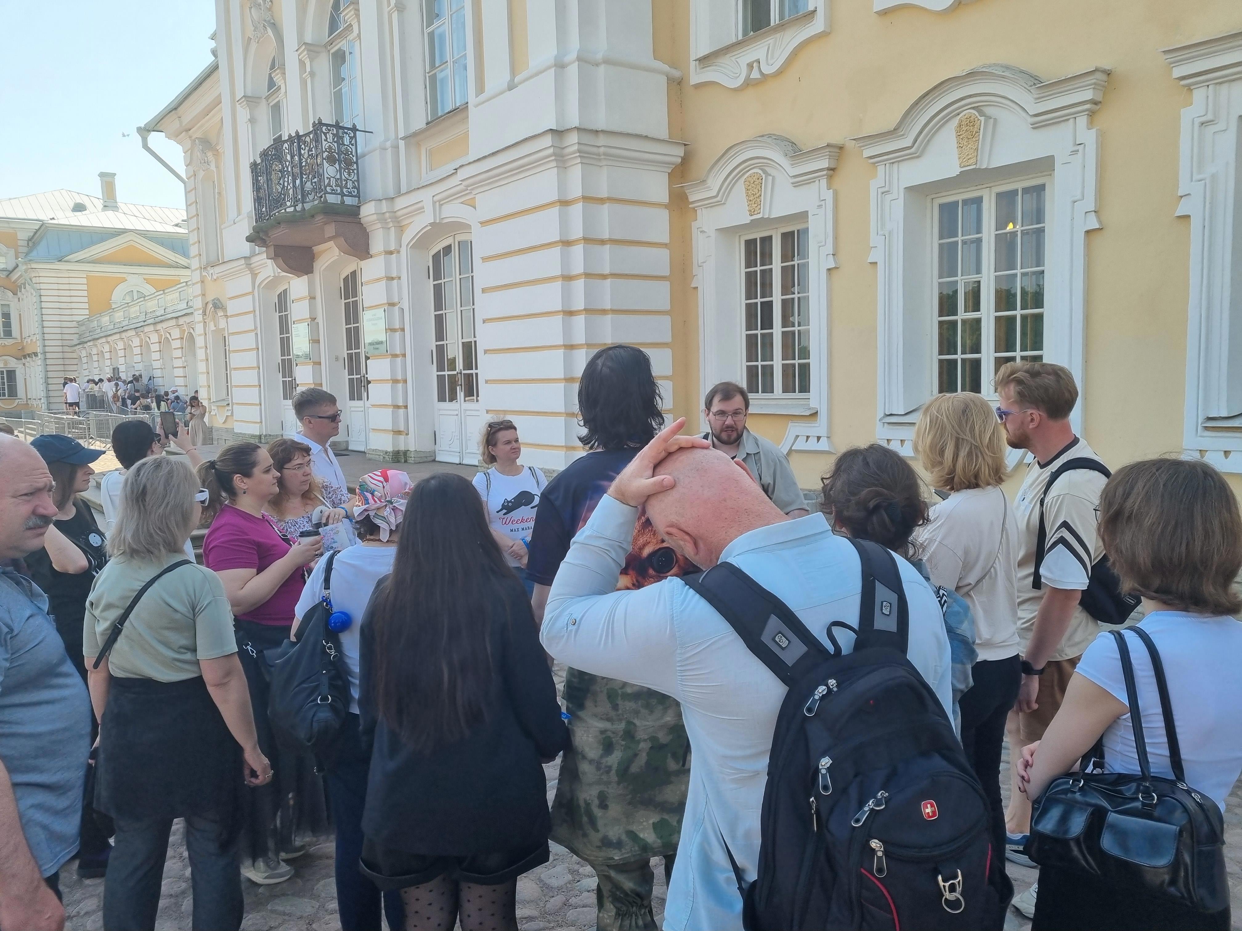 Вообще, я уже был в Петергофе и, после бессонной ночи, очень хотел его прогулять, но потом решил, что это будет неправильно, а трех часов сна - в принципе достаточно, чтобы не сдохнуть. Поэтому встав по будильнику, я пошел к отелю - вышел я в упор, поэтому пришлось поторопиться, чтобы не опоздать к девяти. К частью - я успел, пусть и в упор, к несчастью - автобусы подъехали несколько позже, так что можно было особо не торопиться :)