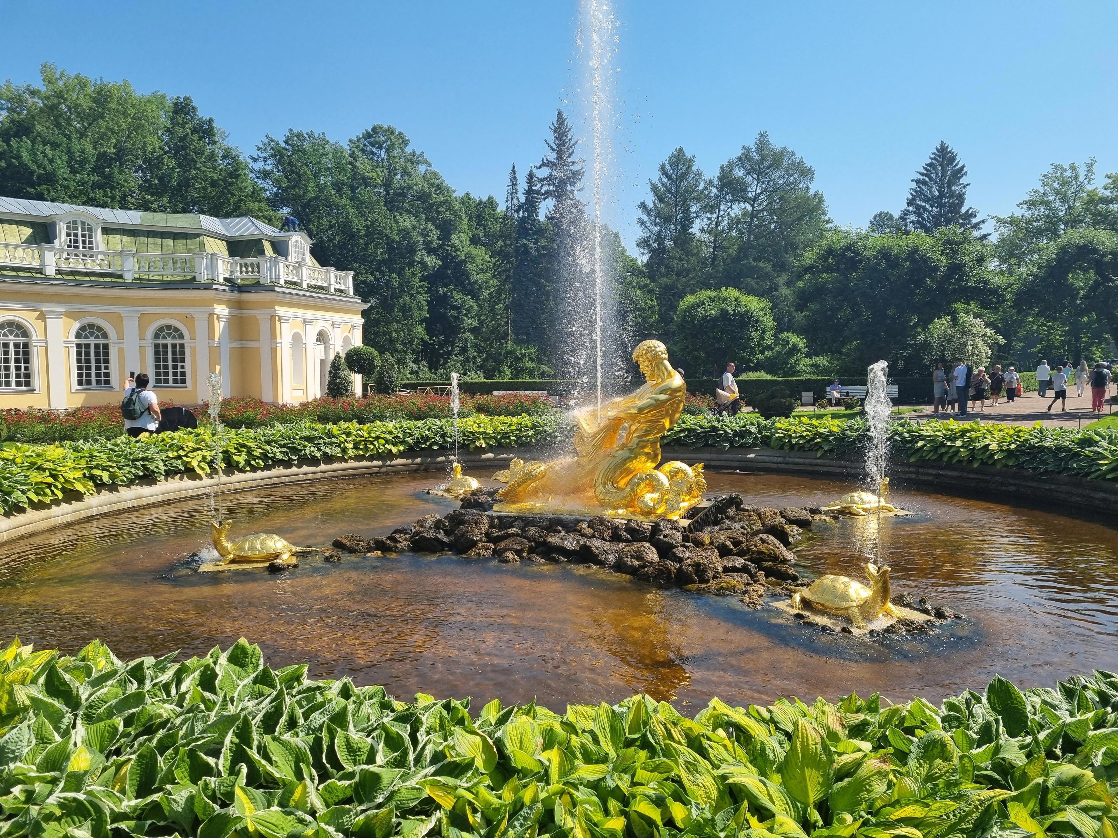 О каждом фонтане нам рассказали свою историю, которой я поделюсь и с вами. Например центральный фонтан с Самсоном восстанавливали по фоткам. И вся эта красота действует за счет перепада высот, поэтому работает на законах физики и не требует перекачивать огромные объемы воды.