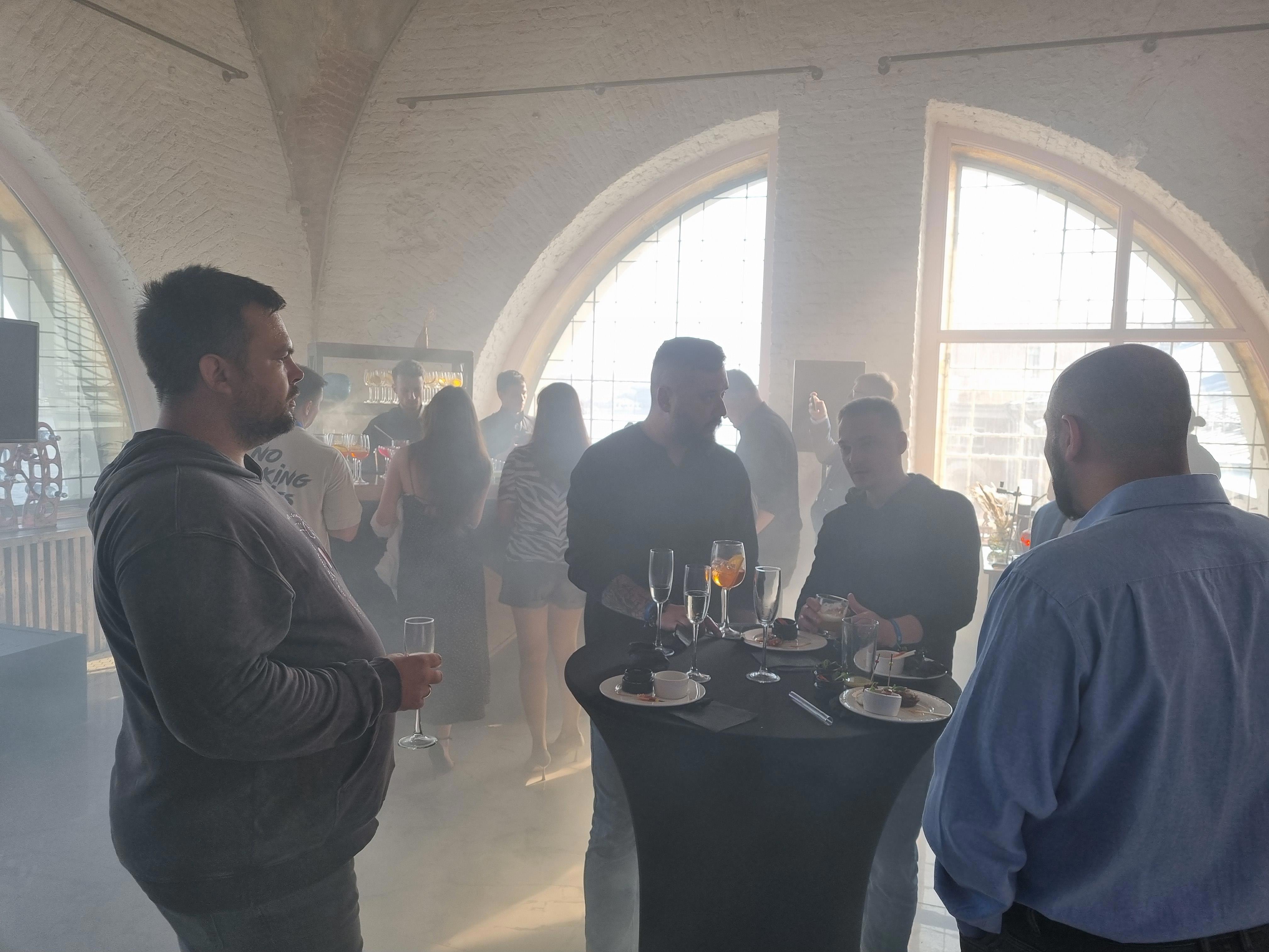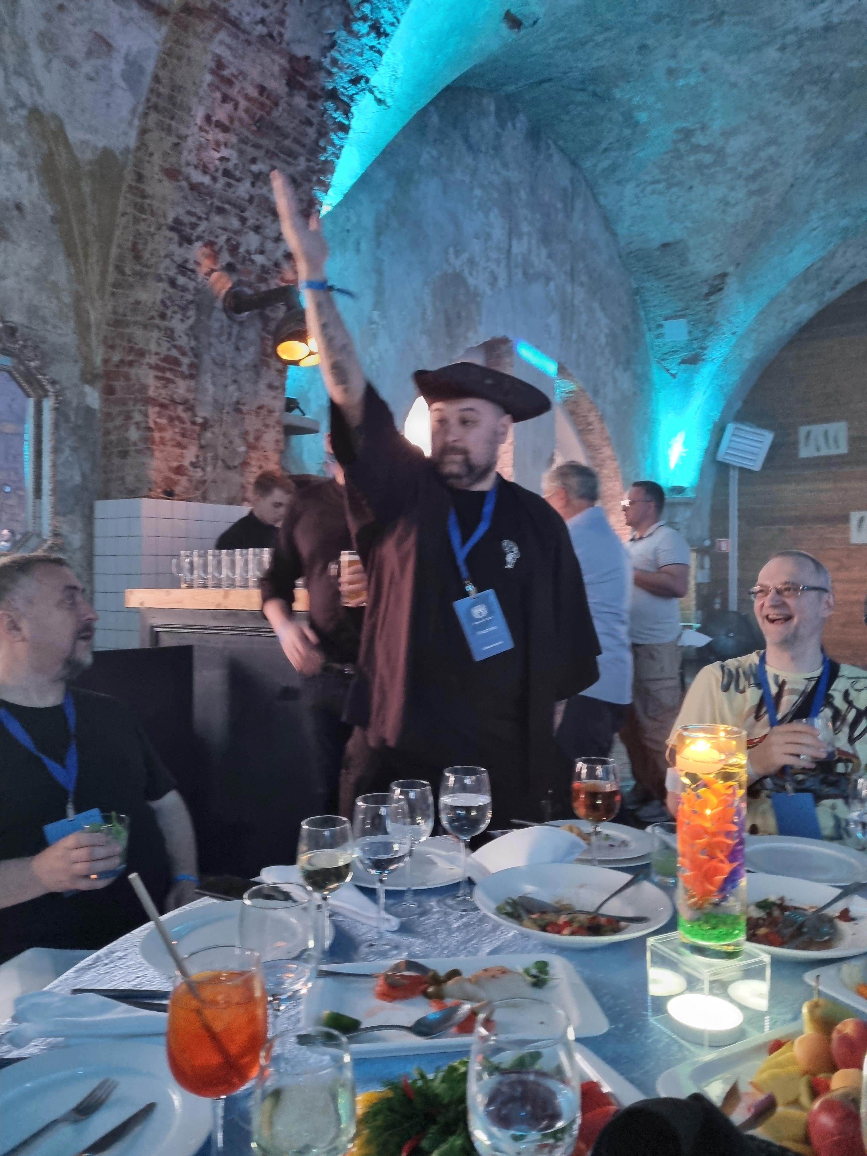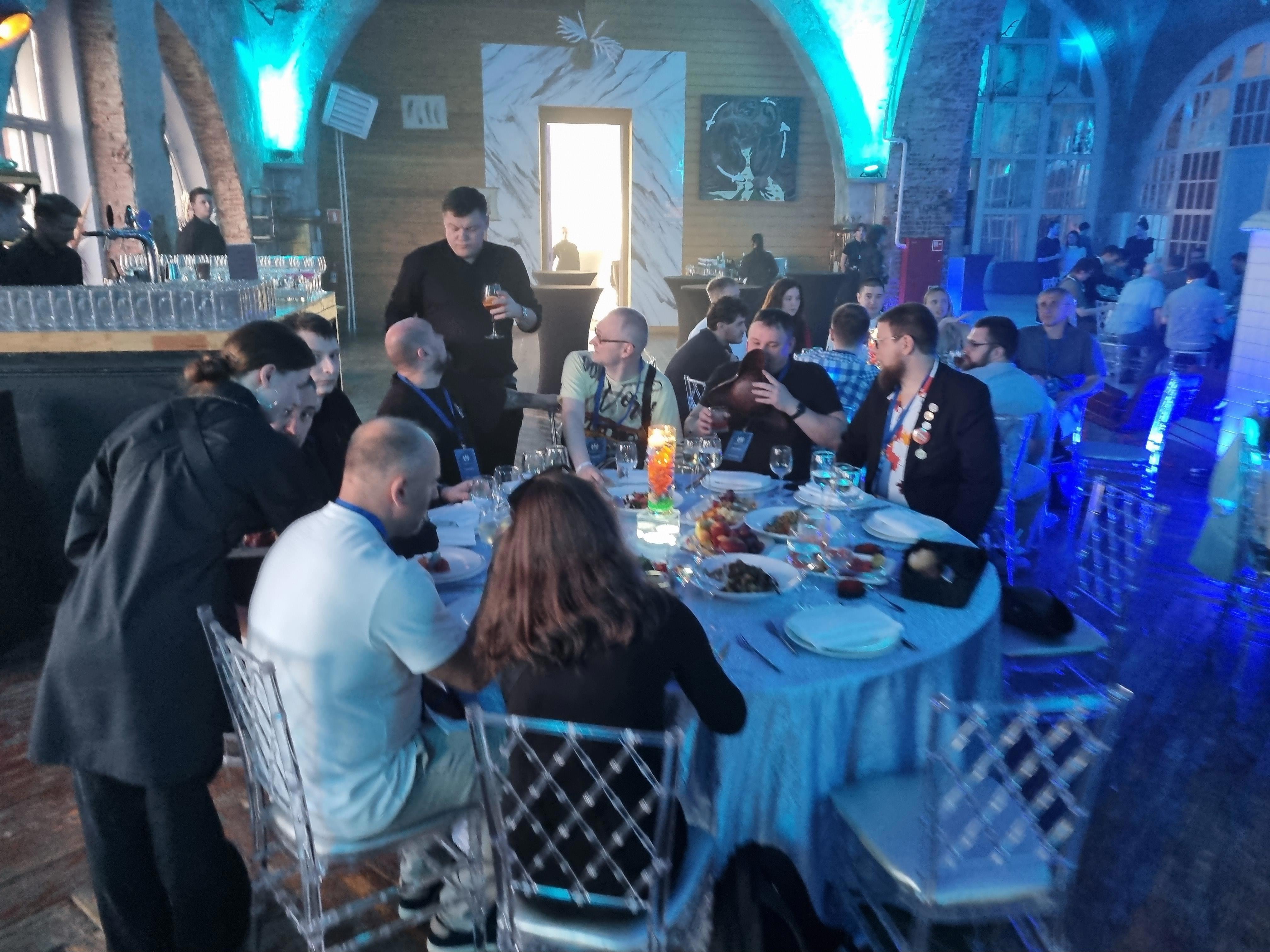 В итоге нас высадили у входа в Loft Hall, где и должно было происходить самое интересное событие сегодняшнего дня, достойно завершающее форум - банкет. Откровенно говоря, после Росконовских банкетов, я ожидал увидеть нечто подобное, но сильно ошибся - тут все было намного круче. Прям, я офигел...