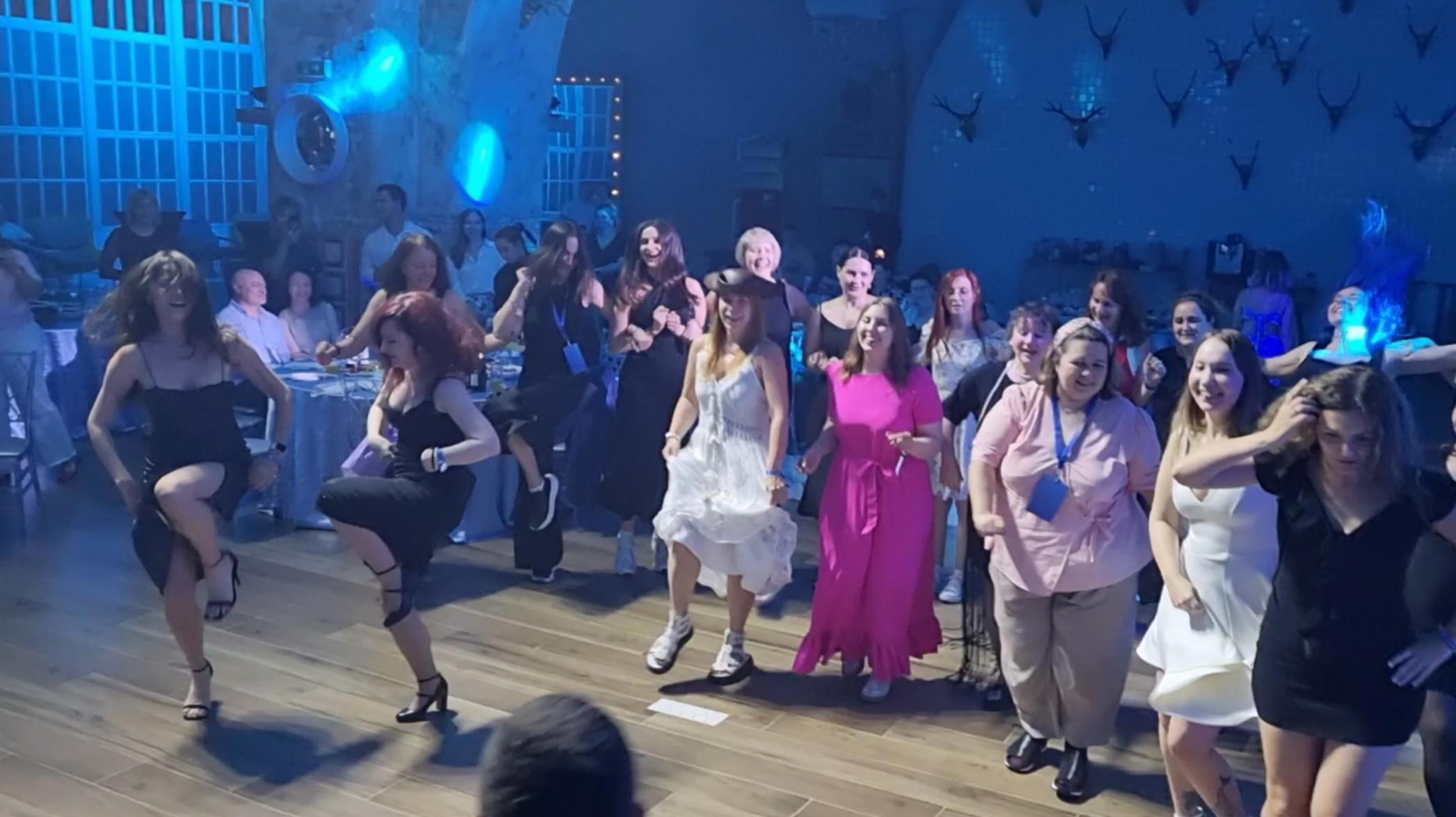 А потом объявили танцы и, хотя Сова рекомендовала мне бежать, но Ирина Котова оказалась быстрее и втянула меня в новую движуху. Танцевальный батл девушек и парней. К своему стыду, танцевать я не умею, но ведущий понимал с кем имеет дело и сразу сказал, что девушки будут танцевать хорошо, а парни - как получится :)))