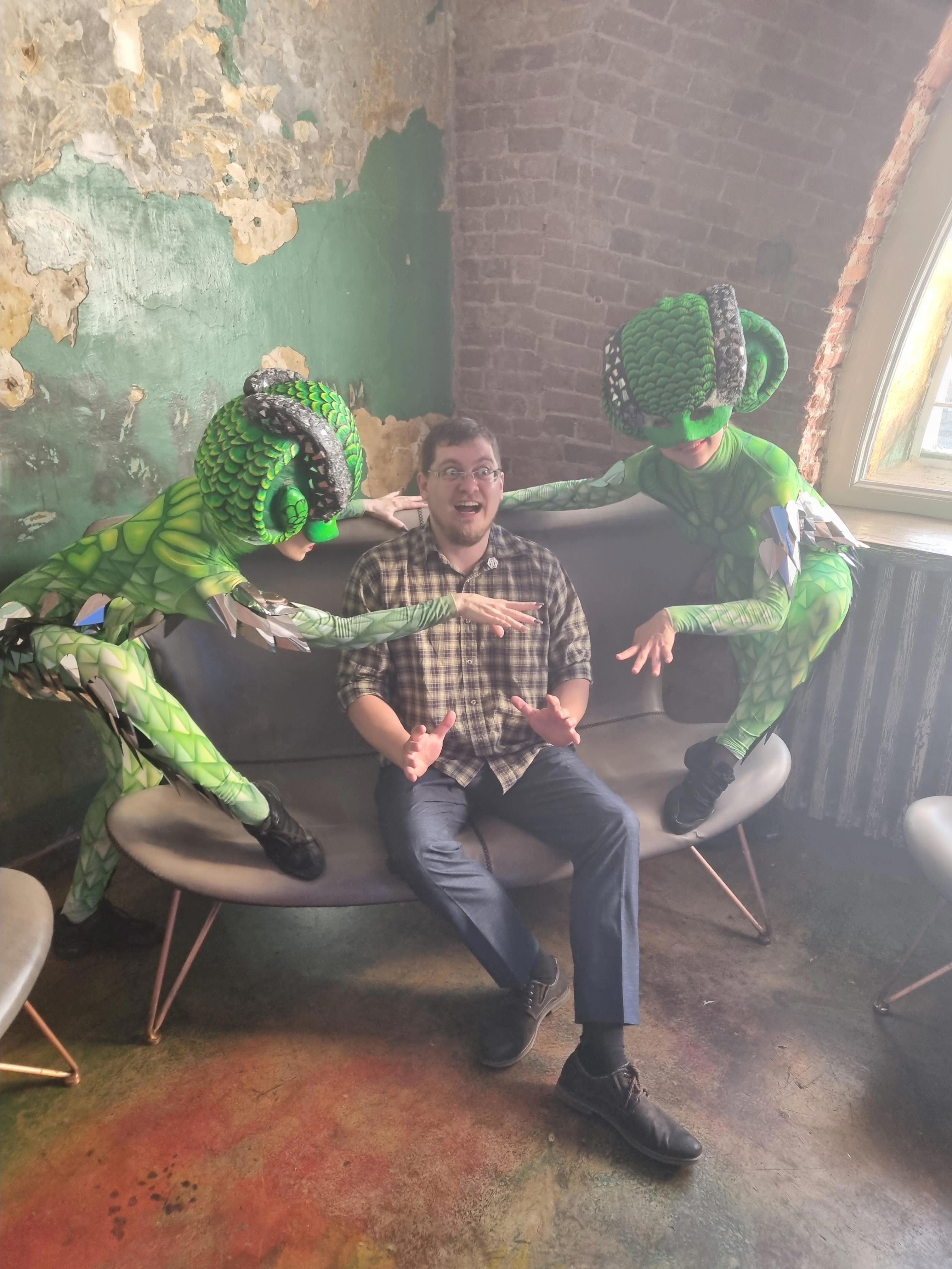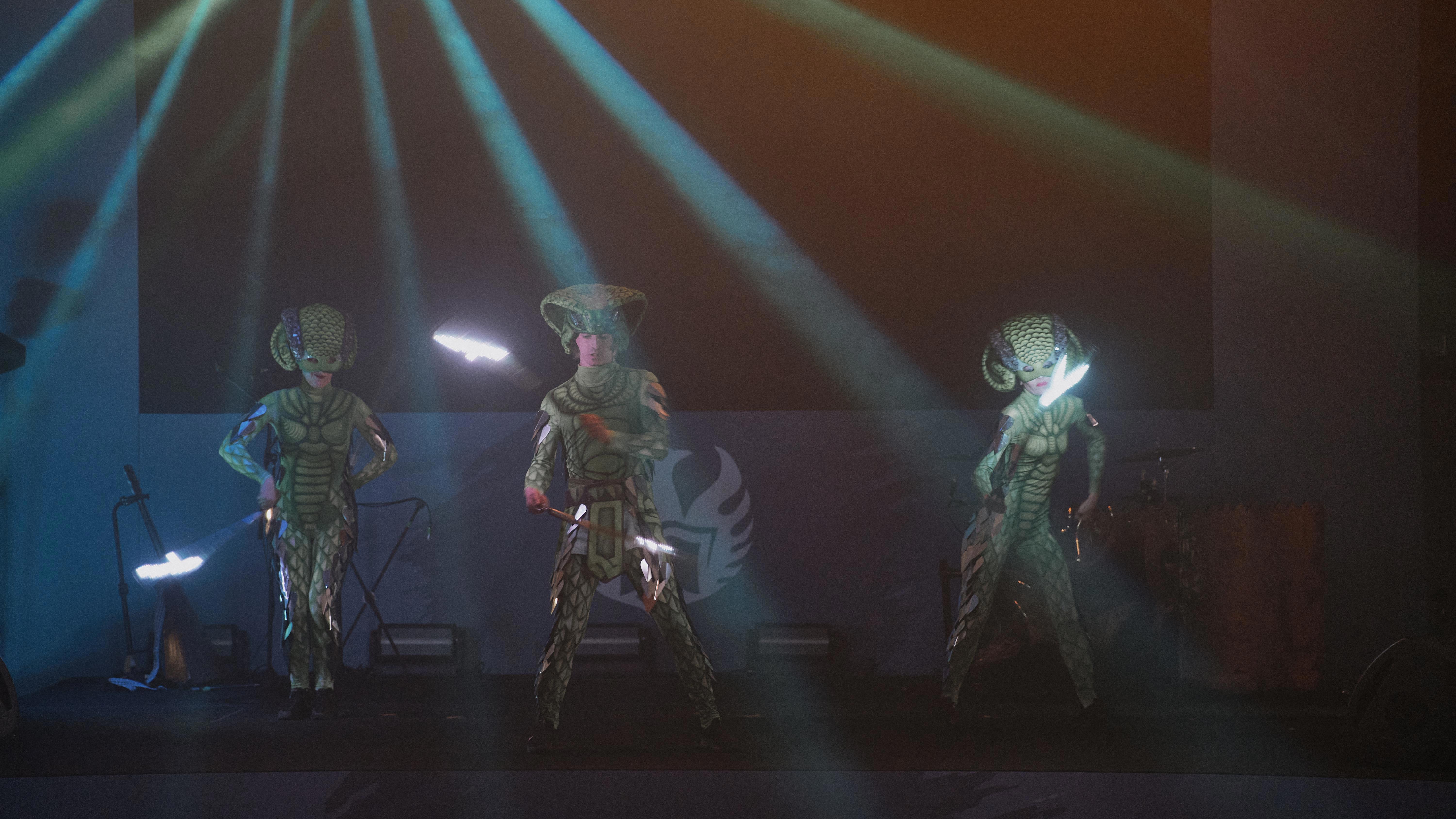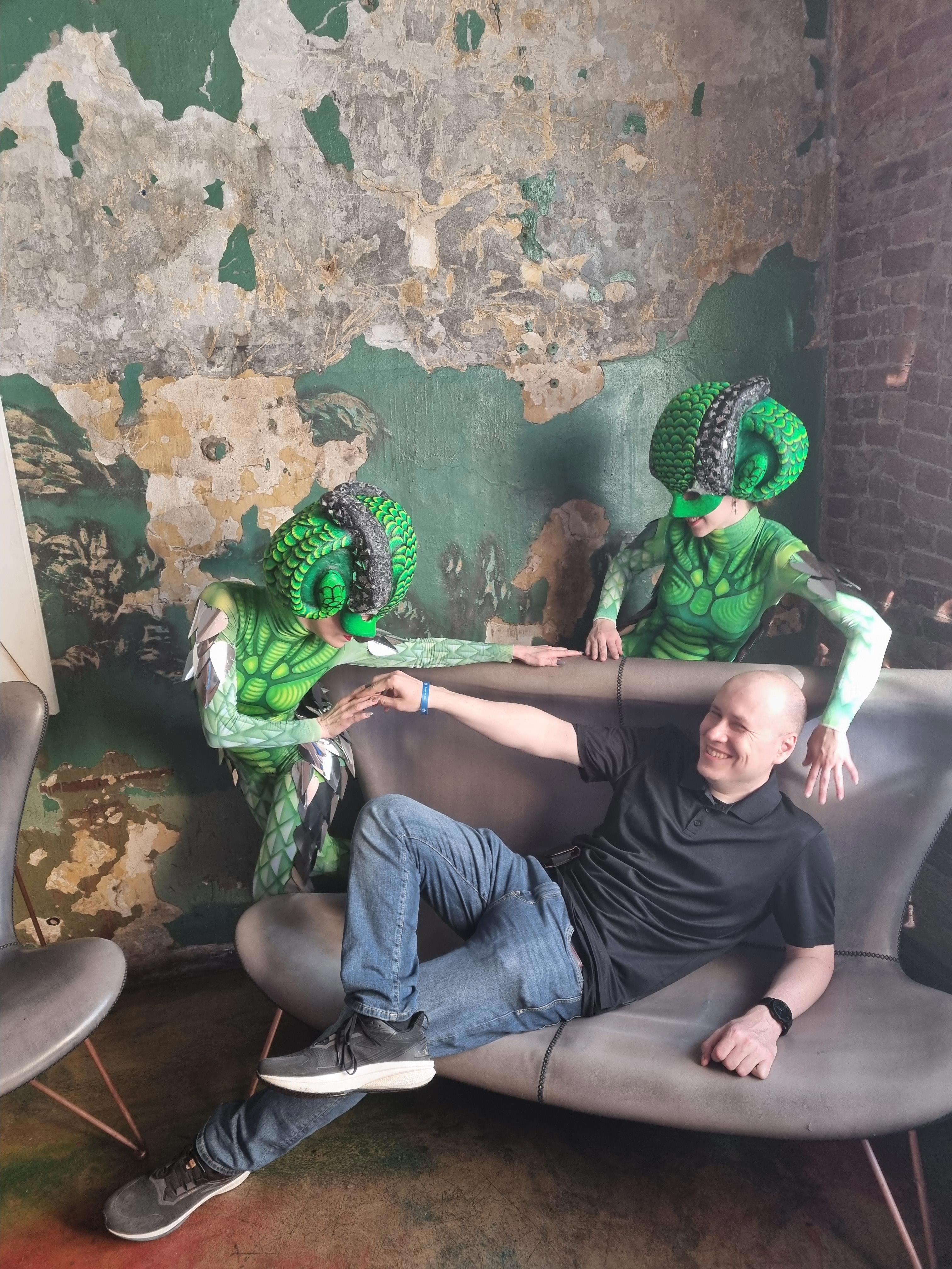 Я не удержался и сделал фотки с косплеершами, а с рептилоидками, которые ходили между гостей, даже снял короткое видео.
