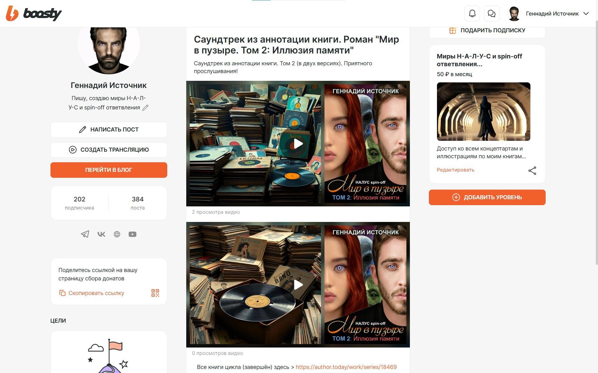На boosty я начал загружать песни созданные на основе аннотаций своих книг. Получается очень интересно!