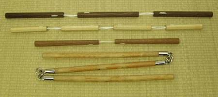 Однако более распространены были цепы, в которых все палки выполняют одновременно функцию и боевой части, и рукояти. Наиболее известно оружие нунчаку - состоящее из двух равновеликих палок.