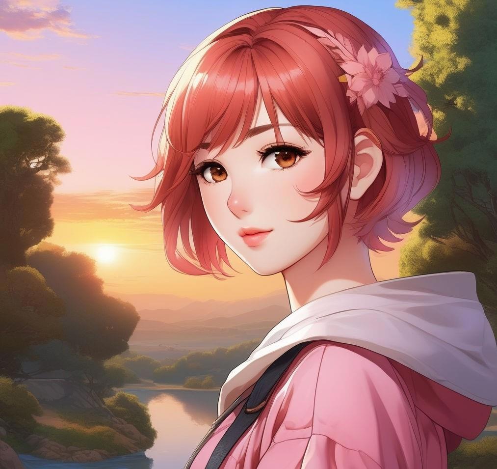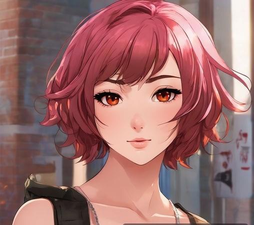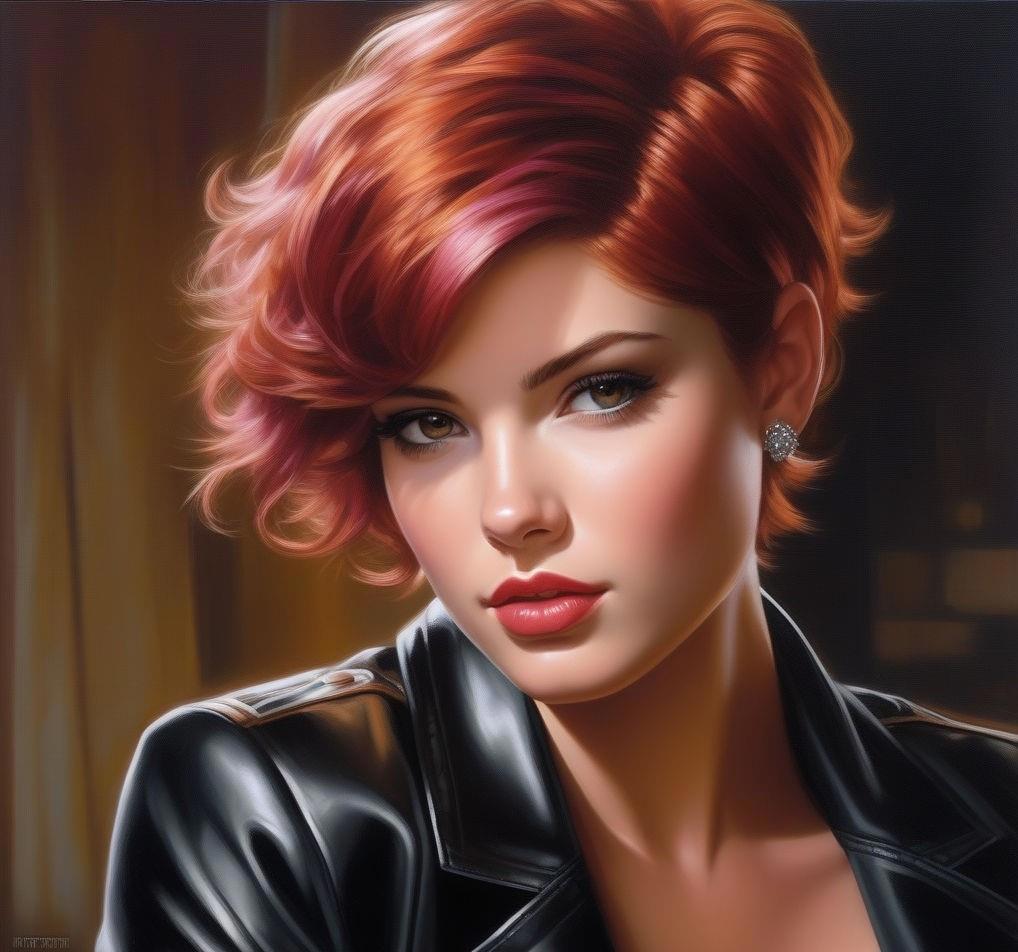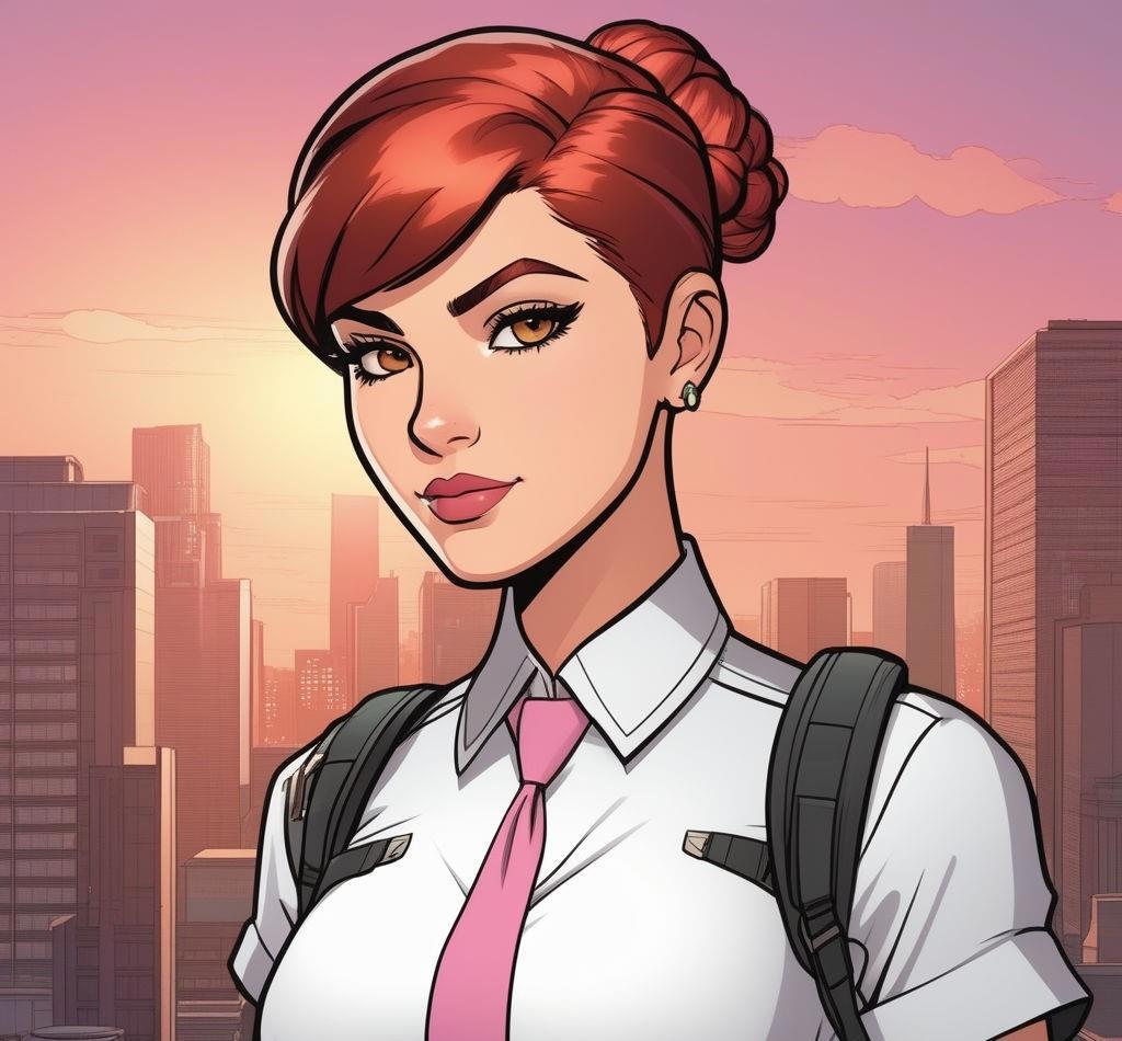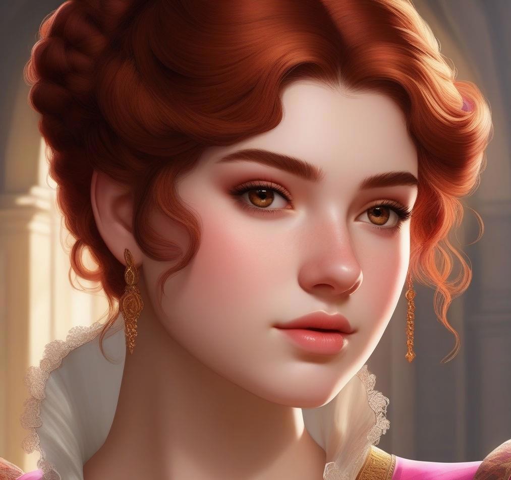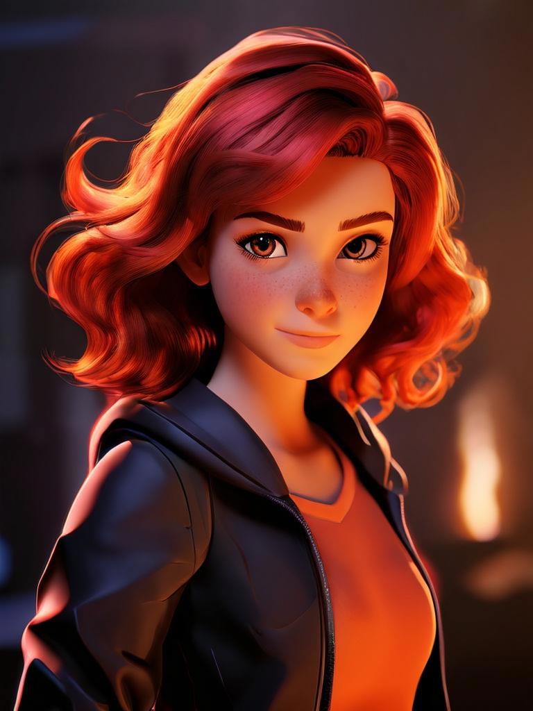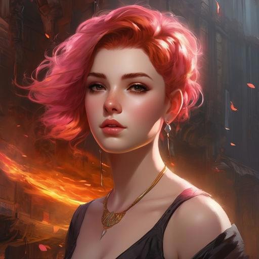 Девятнадцатилетняя коренастая девушка с розовой кожей, с красно-коричневыми глазами, вздернутым носом и огненными короткими волосами, которые стоят торчком