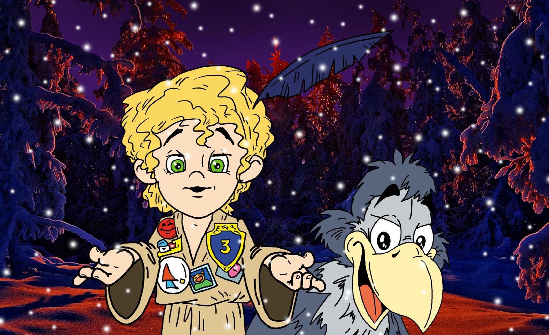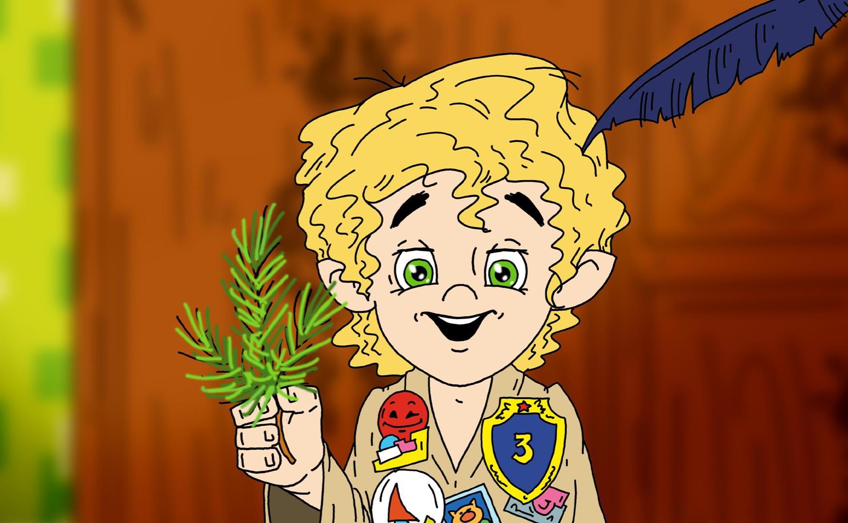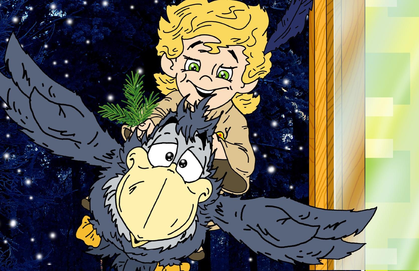 Приключения главных героев: домовёнок Ермошка и девочка Оля летают на берёзовым листике