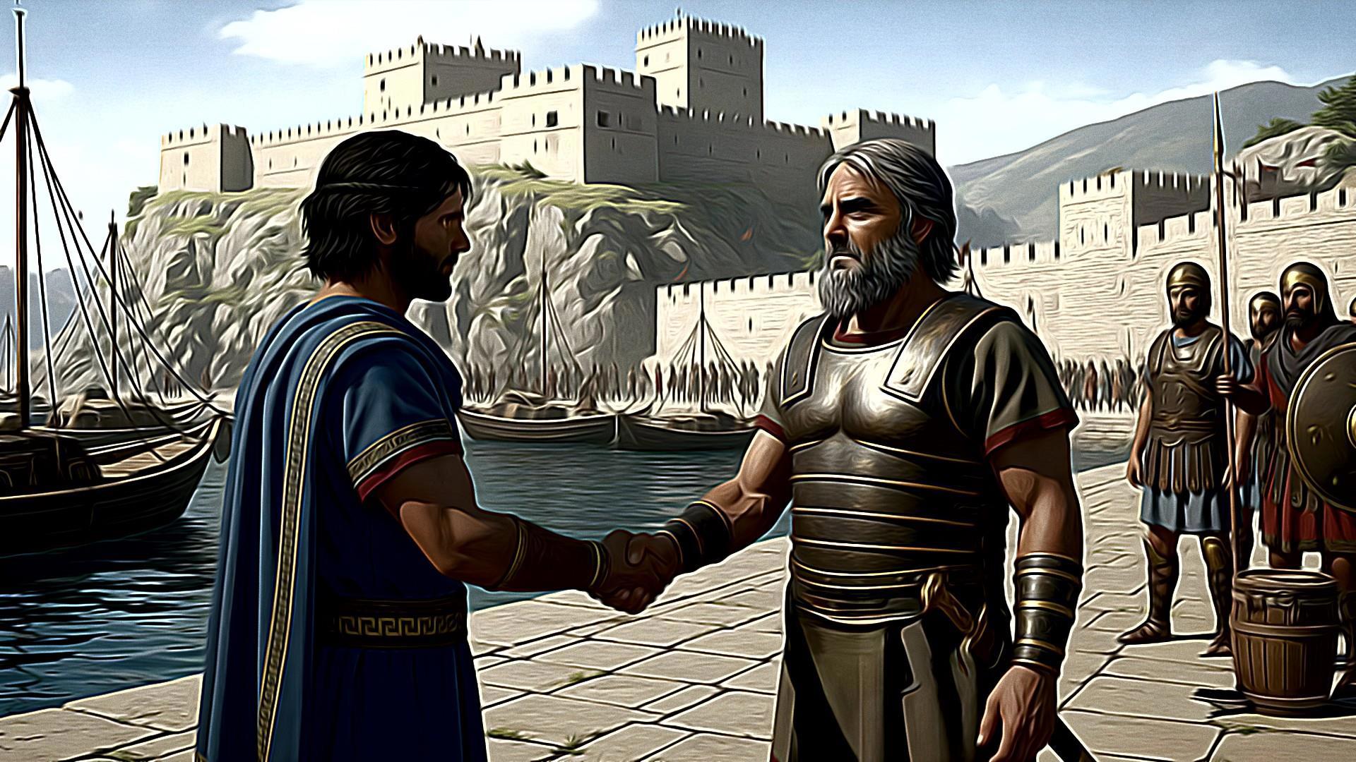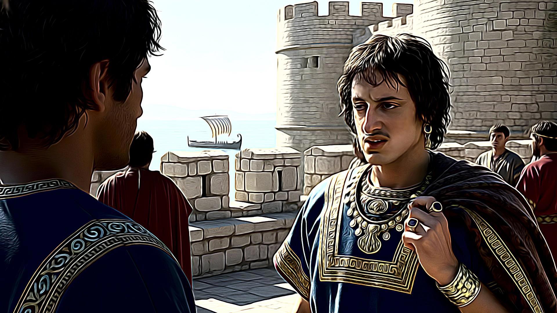 А тут к этой парочке прибывает ещё один обиженка - Беллерофонт, которому Атрей присоветовал связаться с ними. Беллерофонт хочет с их помощью полностью подмять под себя Ликию (Лукку). Вся троица скорешилась, но каждый из них преследует свои цели. Арат радушно встречает Беллерофонта, коллегу по опасному бизнесу.