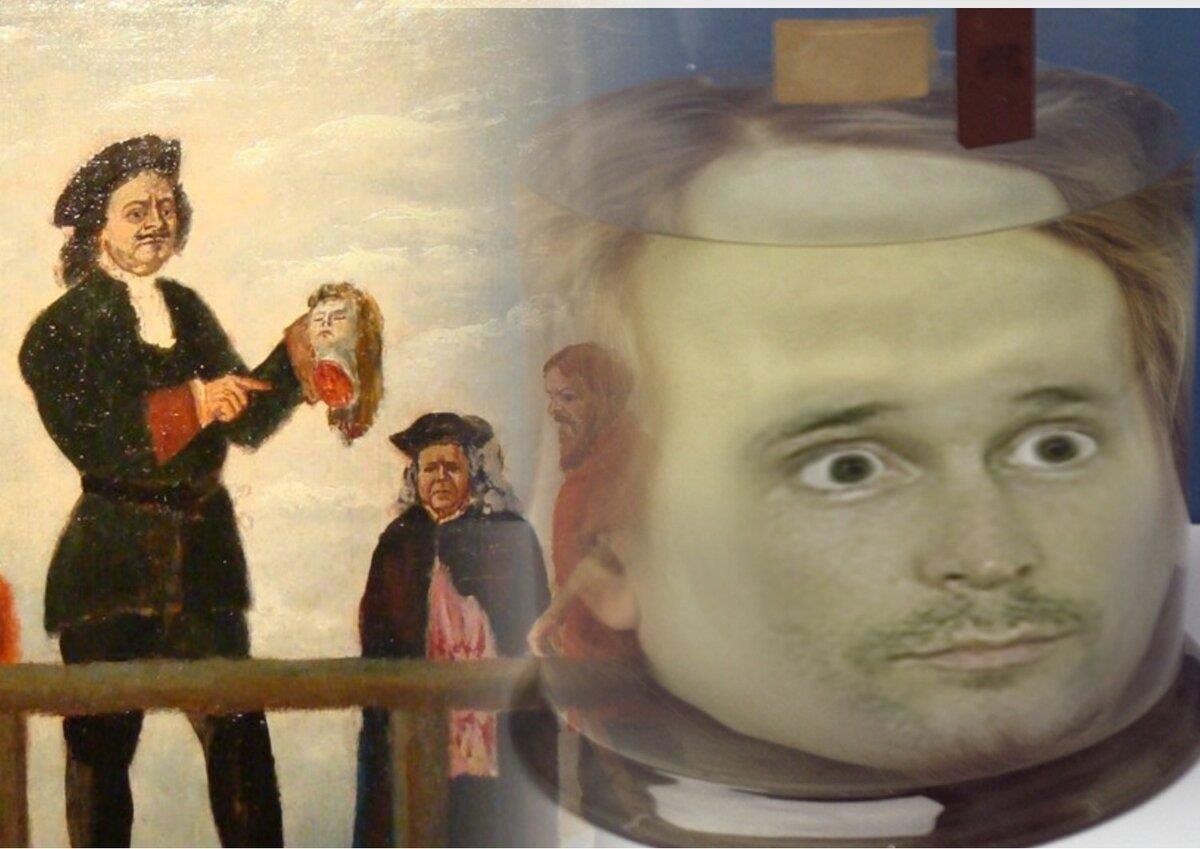 Впрочем, это еще не конец истории. Через несколько дней, он принес заспиртованную в банке голову красавца камергера, поставил ее на столик возле кровати императрицы и под страхом смерти запретил убирать ее или хотя бы накрывать платком. Страшное наказание!