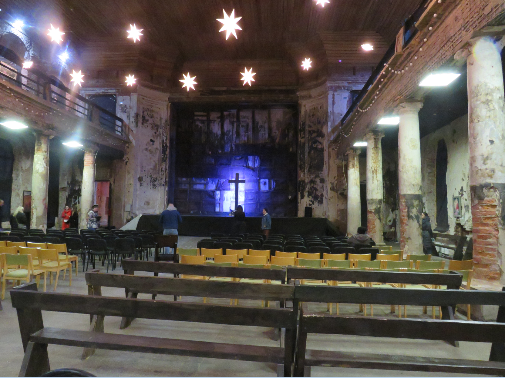И тут мне пришла аналогия с Нотр-Да́м-де-Пари́. Из общения я узнал, что храм сгорел 6 декабря 2002-го, что фасады и крышу отремонтировали власти города, а остальное осталось как есть. Денег у церкви нет, зарабатывают выставками картин, причем бесплатными, в надежде что кто-то, что-то пожертвует. Кстати, выставку я видел и о ней в следующем блоге. Так же видел несколько объявлений о концертах, вход за любое пожертвование.