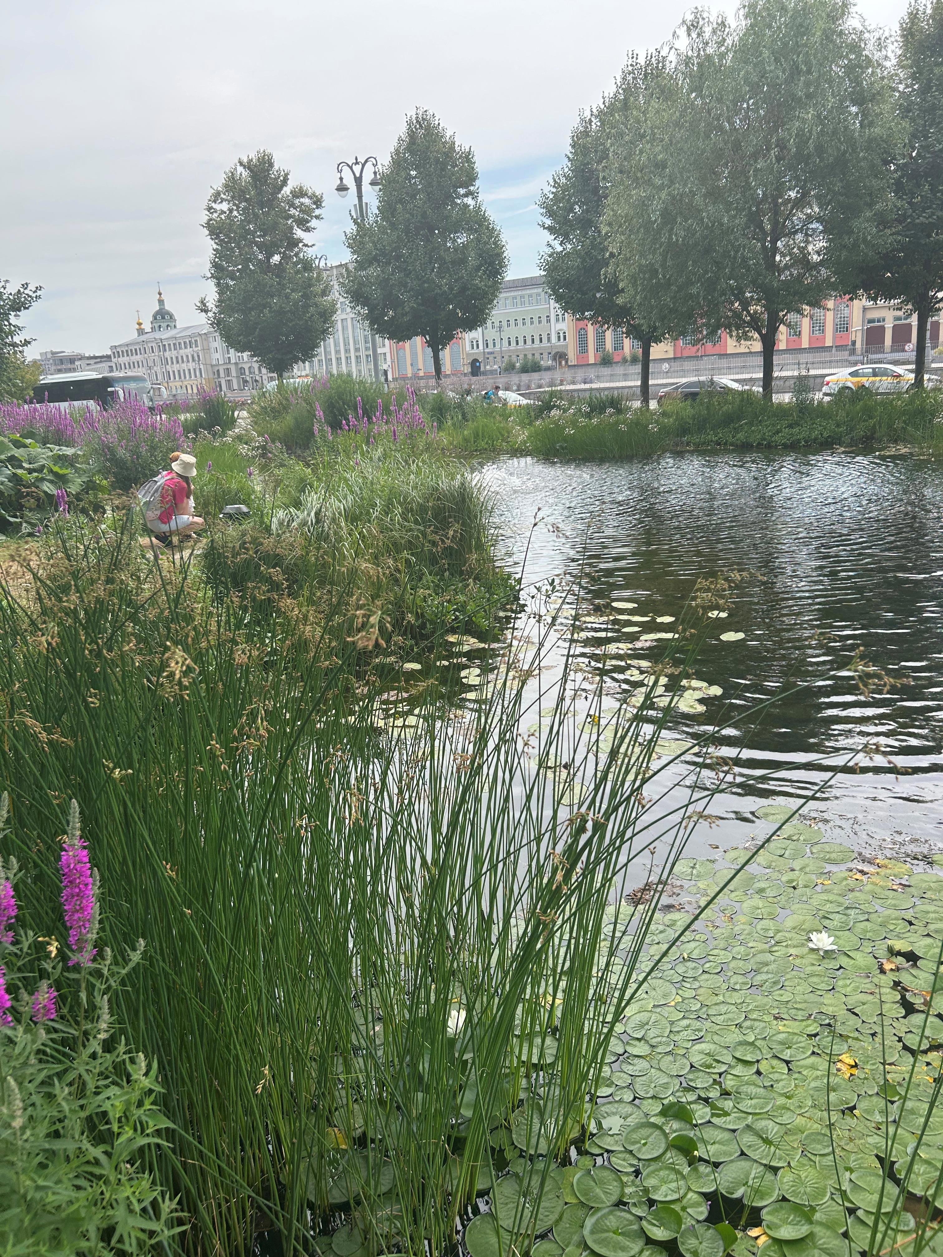 Ну а после корабля, по прибытию, мы ещё часик погуляли в районе Зарядья. Дольше не стали, ибо жара была 35 градусов. Но тем не менее...