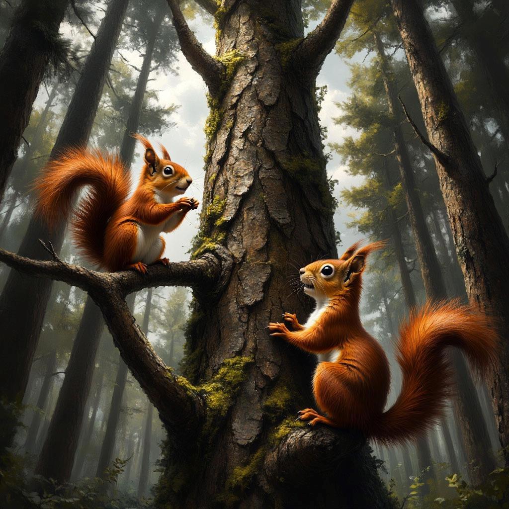Охотница уже уверенно держала в руке лук и, заранее подготовив стрелу, выслеживала свою добычу. Пройдя еще немного, она уловила звонкое цоканье и щебетание, но гораздо низкого тембра, нежели птичье. Лучница уже слышала этот звук в лесу, и его издавала именно белка. Обрадовавшись своей удаче, девушка ускорилась, чтобы нагнать зверька.
