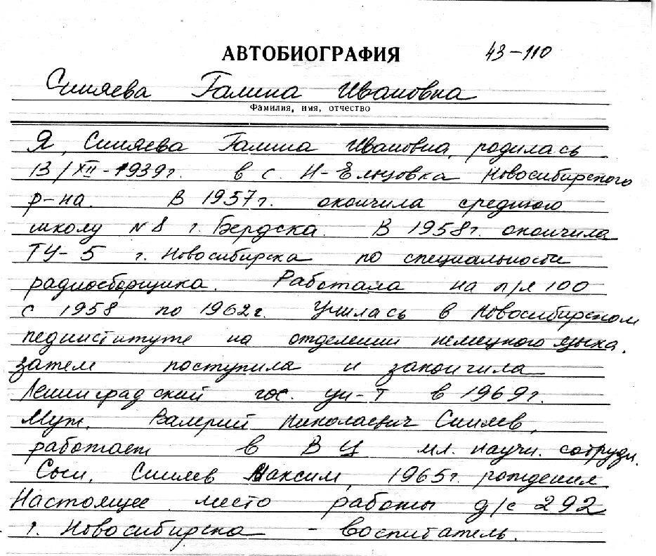 То бишь слово "автобиография" означает не только "описание собственной жизни", но и бланк определенного образца. И нет ничего невозможного, что сотрудник отдела кадров будет писать автобиографию Галины Ивановны на новом бланке для каких-то производственных или социальных нужд.