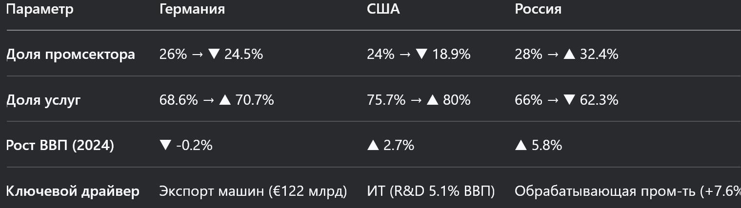 | Сектор | Россия (2020→2025) | Германия (2020→2025) | США (2020→2025) |