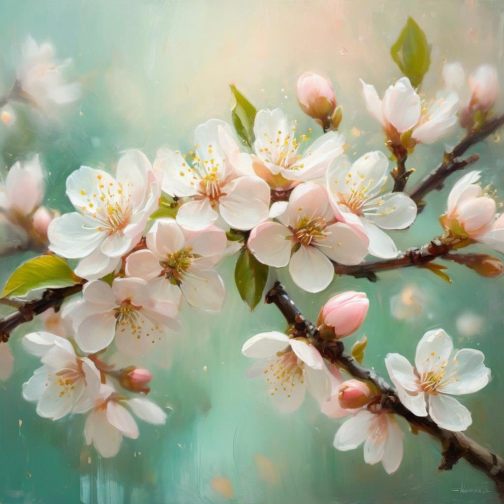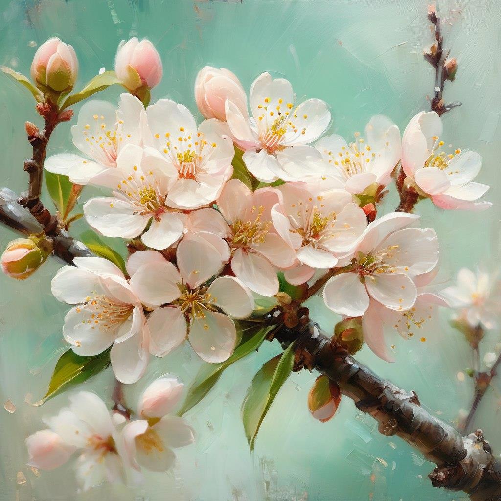 В центре маленького тёмного мира высветился чёткий круг, в котором выросло деревце. Вот ещё только голые веточки тянутся от ствола, а уже через мгновение на них появляются набухшие упругие розовые почки, из почек раскрываются розовые и белые с розовыми прожилками цветы.