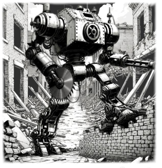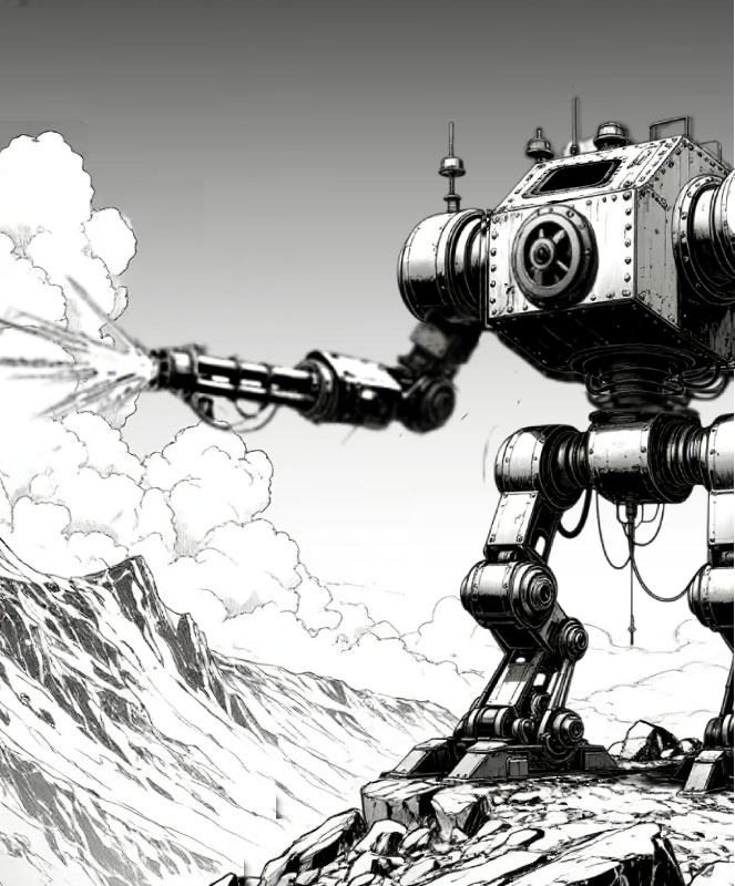 Самым сложным оказалось добиться того, чтобы на всех картинках была более-менее одинаковая (хорошо, схожая) одежда и, разумеется, одни и те же шагоходы.